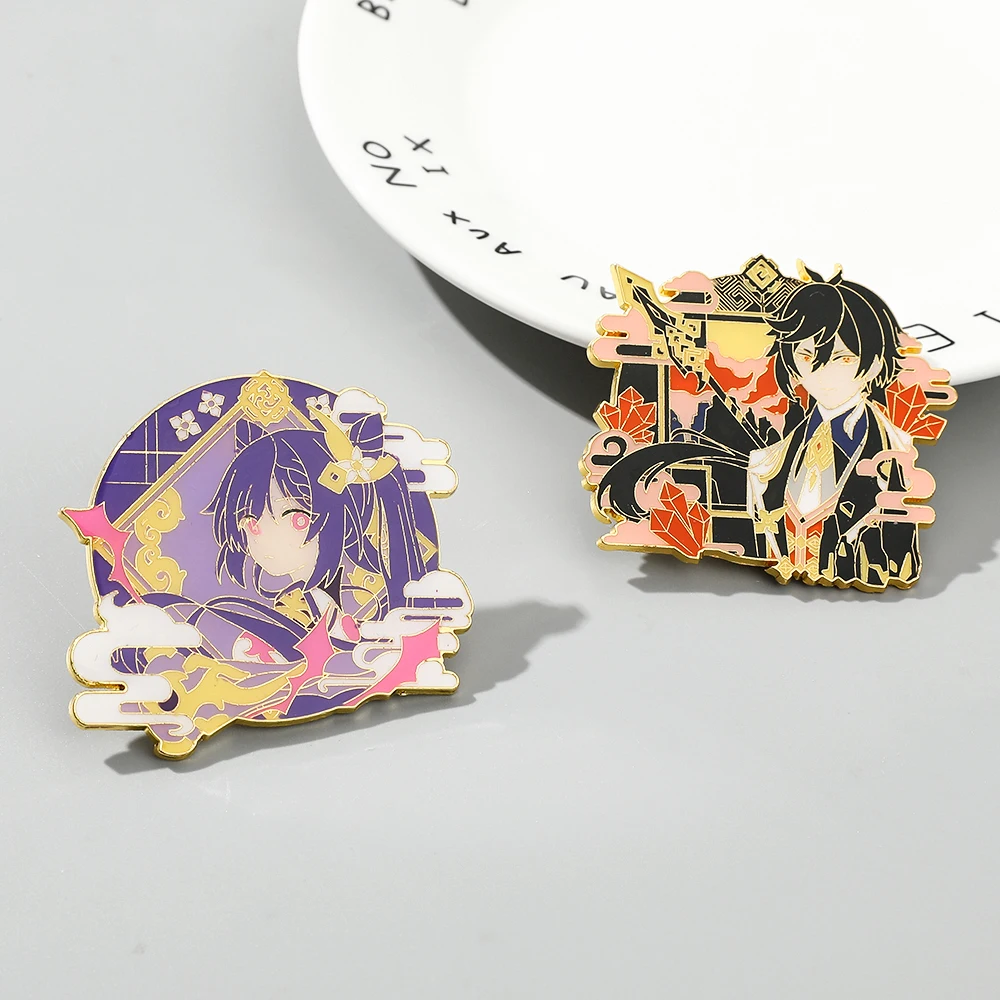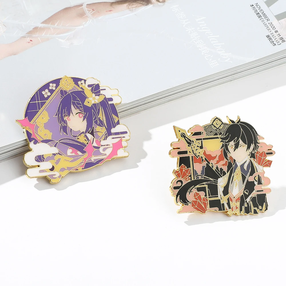 Мультяшные аниме Genshin Impact Xiao Barbatos Keqing брошь значки косплей реквизит джинсы аксессуары булавка ювелирные изделия подарок для детей