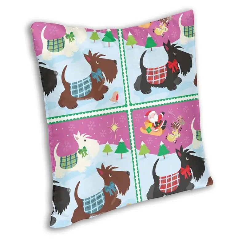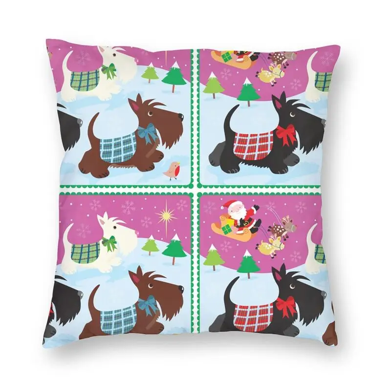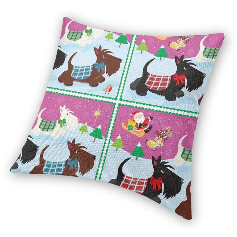 Рождественская Наволочка на подушку шотландского терьера, наволочка для дивана, гостиной, квадратная наволочка с собакой Скотти 40x40