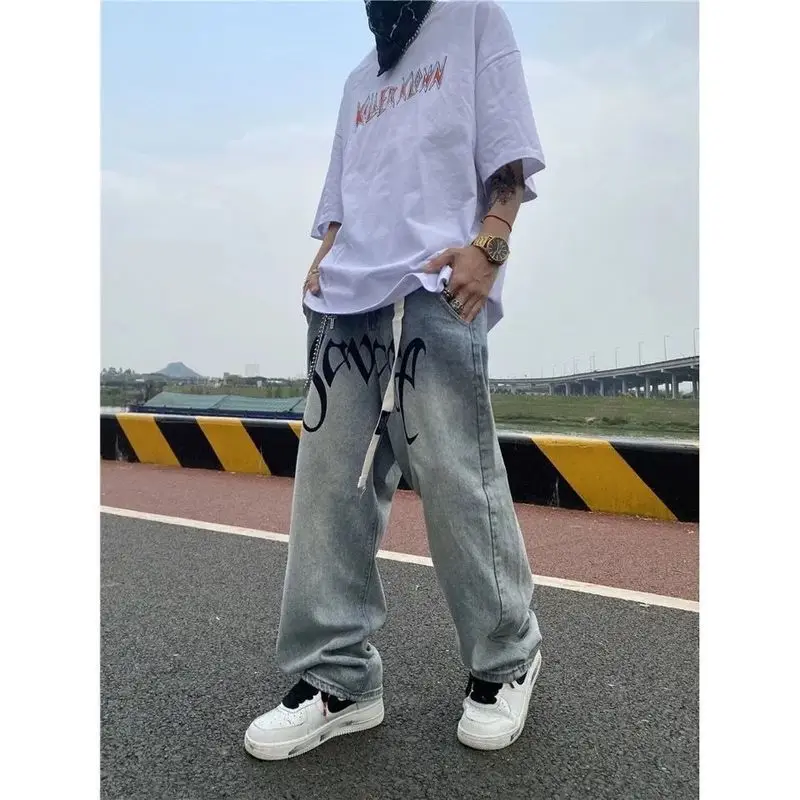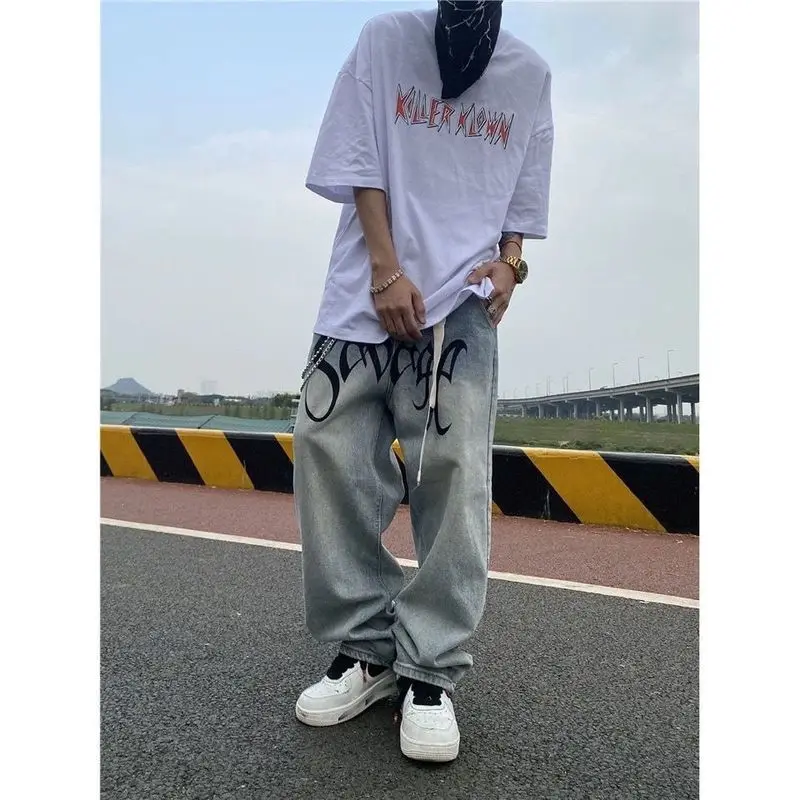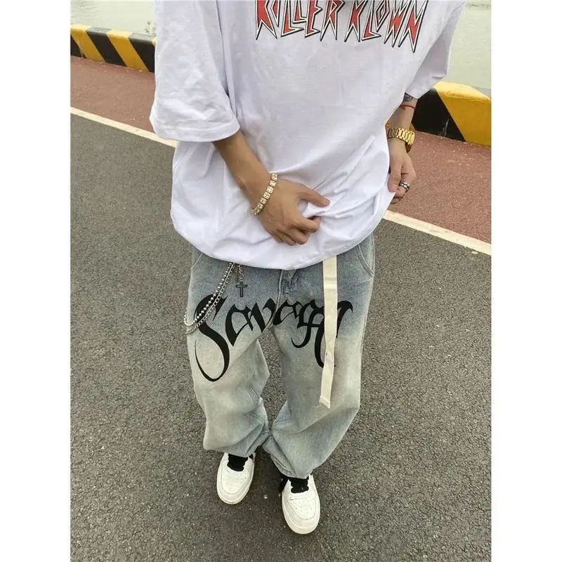 Джинсы мужские свободные с буквенным принтом, уличная одежда в амер...