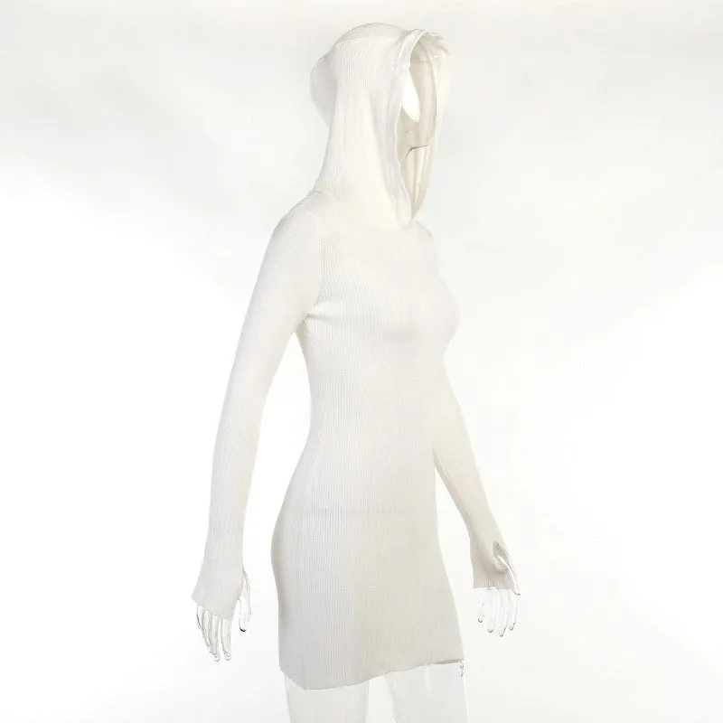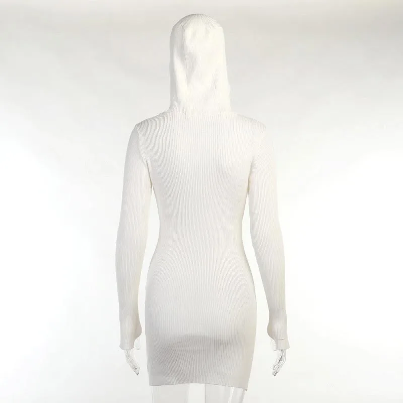 Женское трикотажное повседневное мини-платье с капюшоном, облегающе...