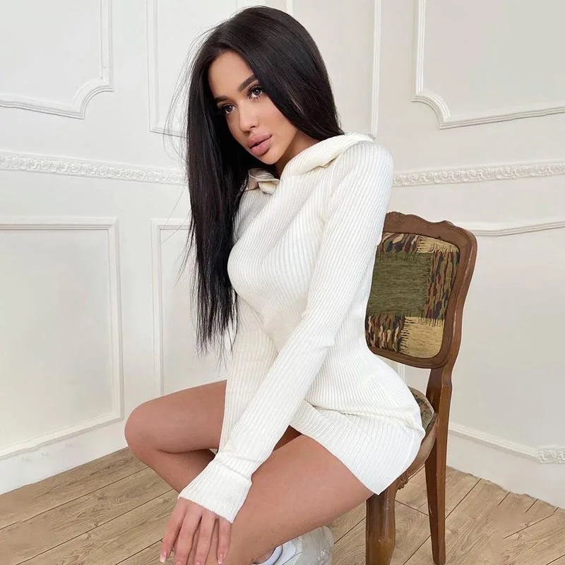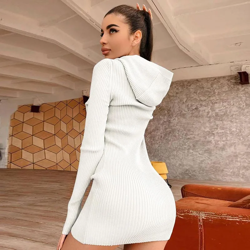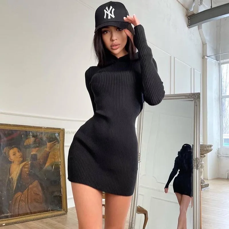 2021 модный однотонный вязаный пуловер с длинным рукавом, худи, женское платье, осенне-зимнее сексуальное праздничное мини-платье с высокой талией для женщин
