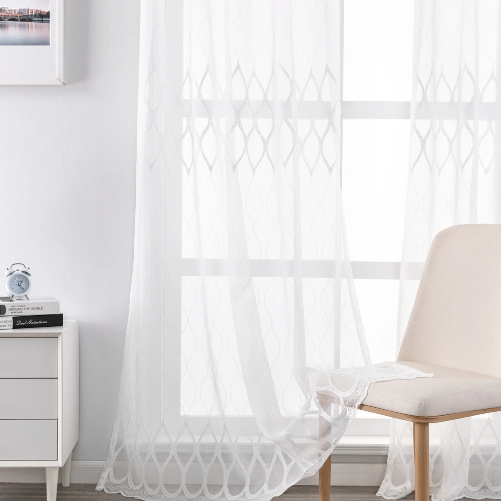 Белые вышитые прозрачные Занавески для гостиной, окна, элегантные, ...
