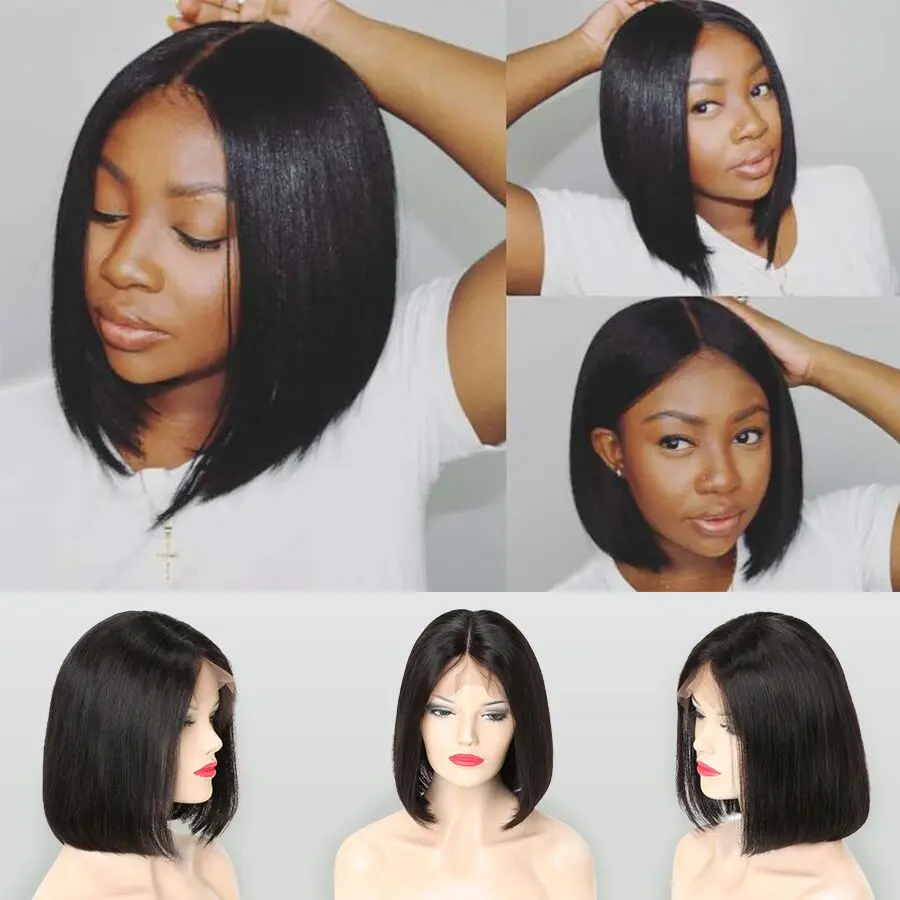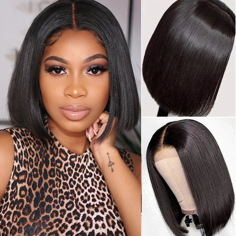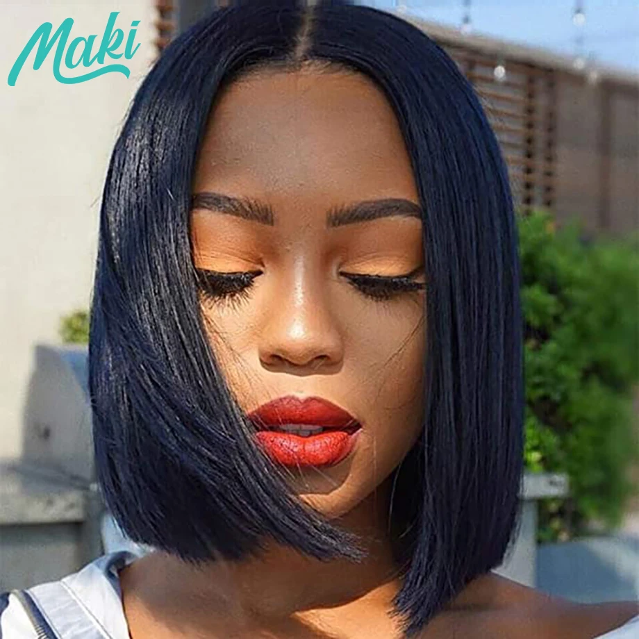 Парик на сетке Maki Bob, бразильские парики из человеческих волос, прямые парики для женщин, парик с прямыми волосами 4x4, парики на сетке с прямыми волосами, 10 дюймов с тупым вырезом