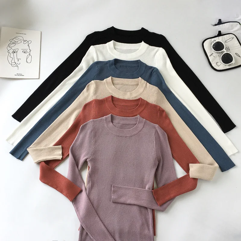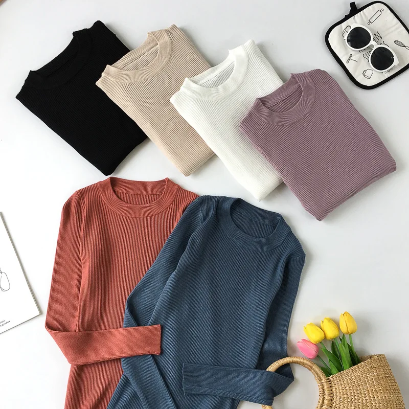 Женский вязаный свитер Forefair с высоким воротником, Осень-зима 2021, Модный повседневный однотонный Дамский облегающий пуловер с длинным рукавом, свитер