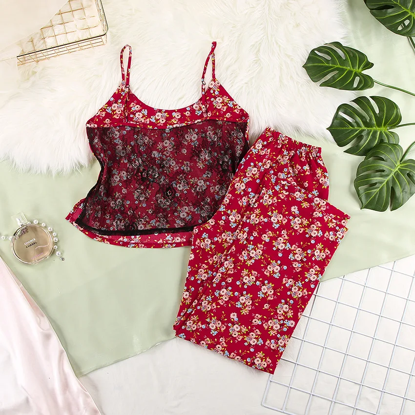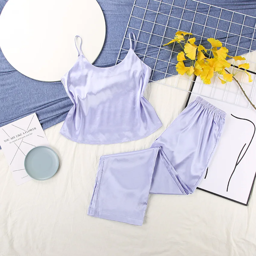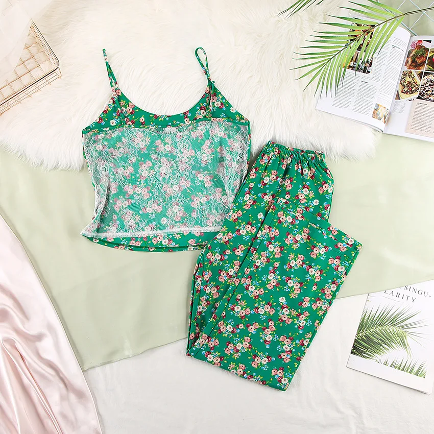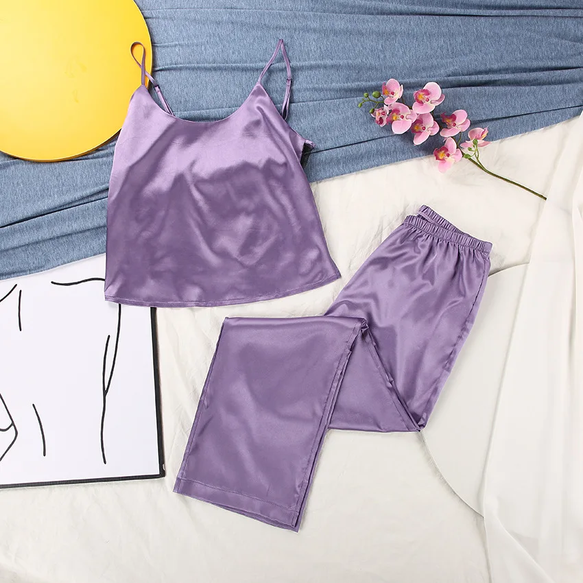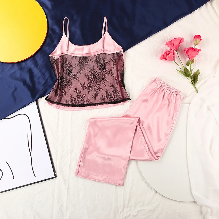 Женская атласная пижама, привлекательные кружевные шорты с тонкими бретельками и длинные брюки, одежда для сна разных цветов, Женская домашняя одежда