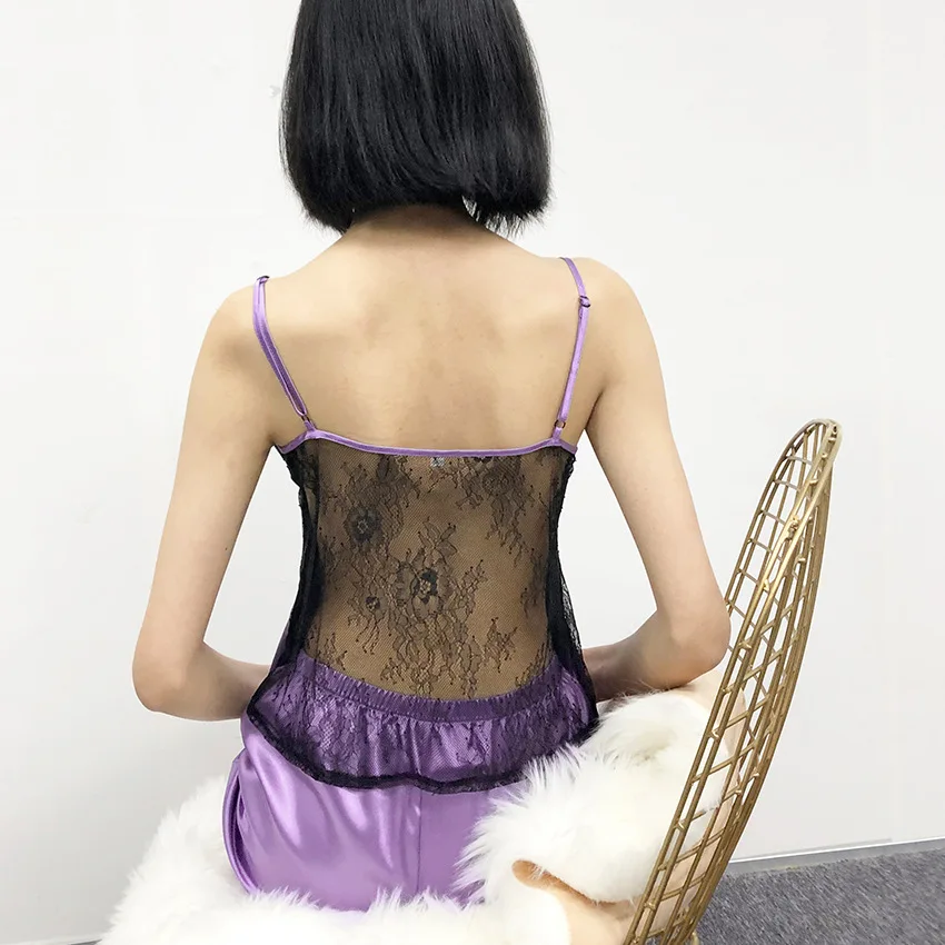 Пижама женская атласная с открытой спиной, пикантная кружевная ночн...