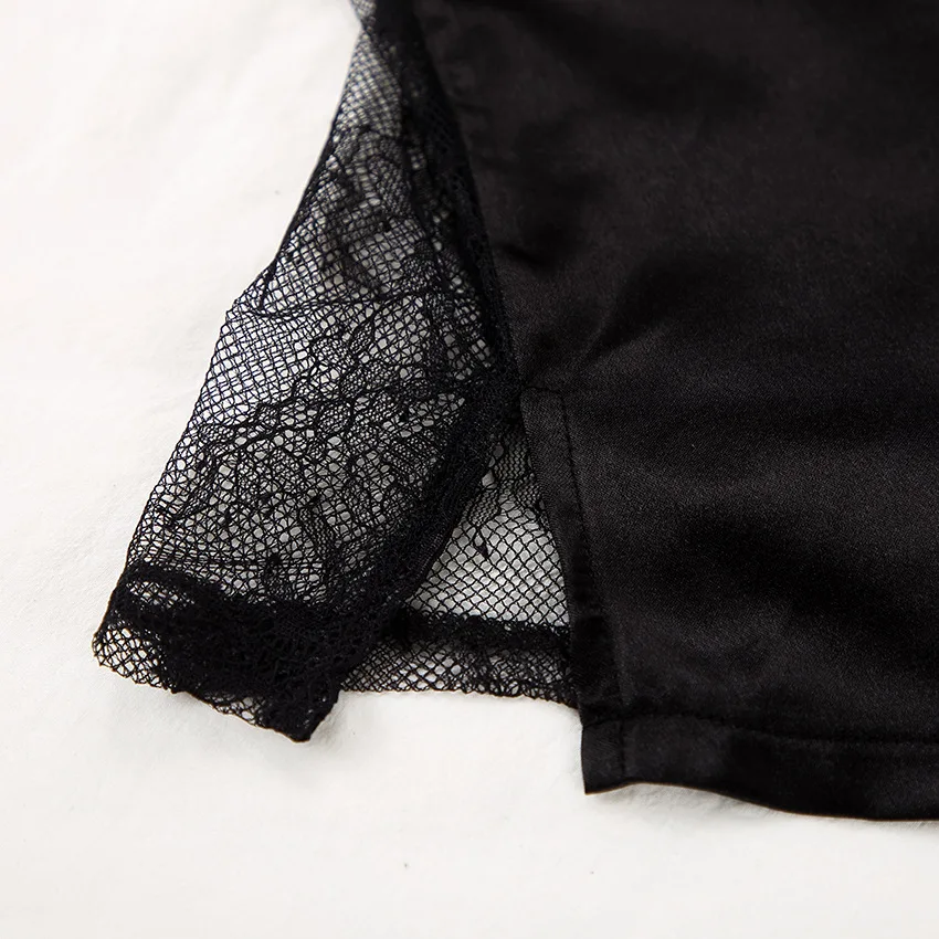 Сексуальная атласная пижама HiLoc с открытой спиной, Черная кружевн...