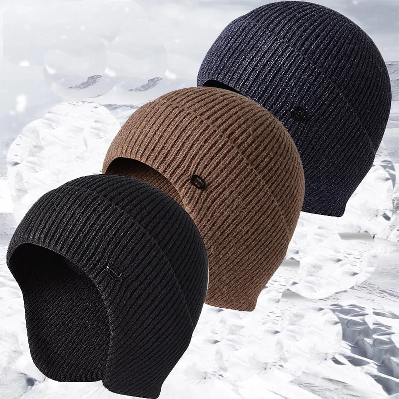 Мужская вязаная шапка для улицы, зимняя шапка-ушанка, теплые шапочки, облегающие шапки, шапка унисекс, защита от ветра и ушей, шапки-ушанки, шапки