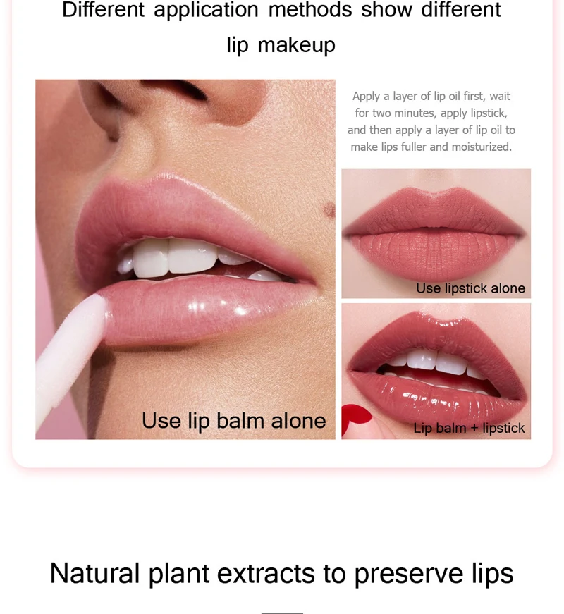 Перед окрашиванием используйте его как базовый макияж, цвет, смягчить и увеличить цвет губ или использовать его на помаде, чтобы сделать его блестящим и пухлым. Для тяжелого ухода за губами, его можно использовать отдельно, обрабатывать 15 дней в день, каждое утро перед макияжем или ночью.