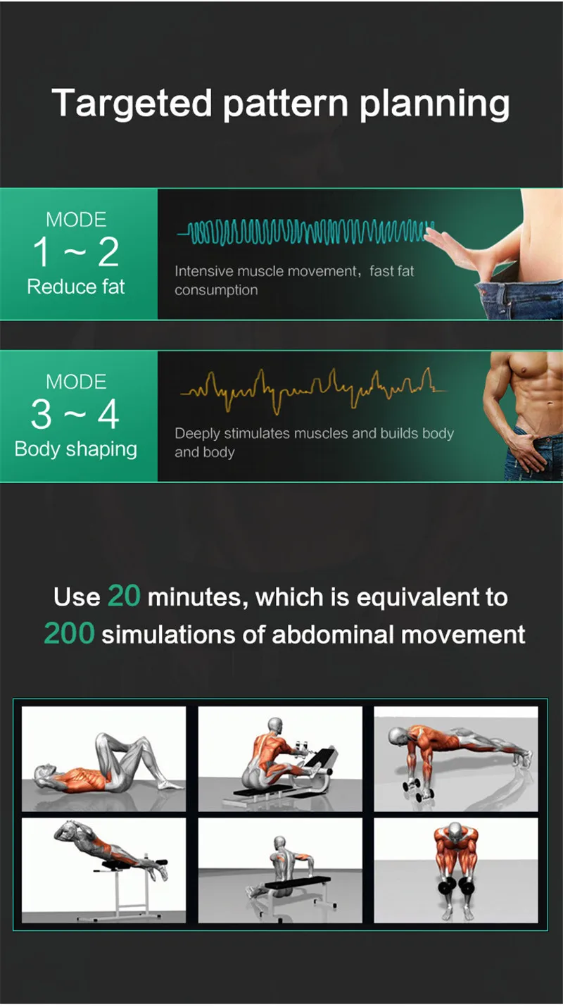 2. Мышечный тренажер использует EMS микроэлектрическую технологию для стимуляции мышц, так что мышцы могут самостоятельно сжимать упражнения, используются для тренировки мышц, повышения мышечной силы, похудения, чтобы вы могли создать идеальную форму тела даже не подняв руки.