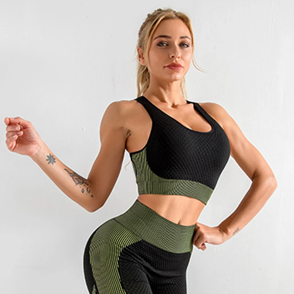 Бесшовные спортивные комплекты, спортивная одежда для женщин, комплект для йоги, спортивный костюм, тренировочная спортивная одежда, бюстгальтер для фитнеса, топ, леггинсы для бега, спортивный костюм