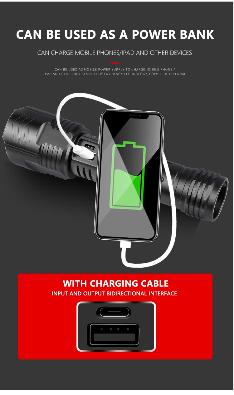 Самый мощный светодиодный фонарик высокой яркости, Перезаряжаемый U...