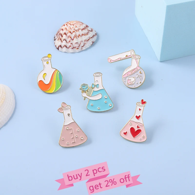 Эмалированные булавки Beaker в форме бутылки Галактики, Радужное розовое сердце, бант, металлические броши, значки, значки, булавки, подарок для любителей науки