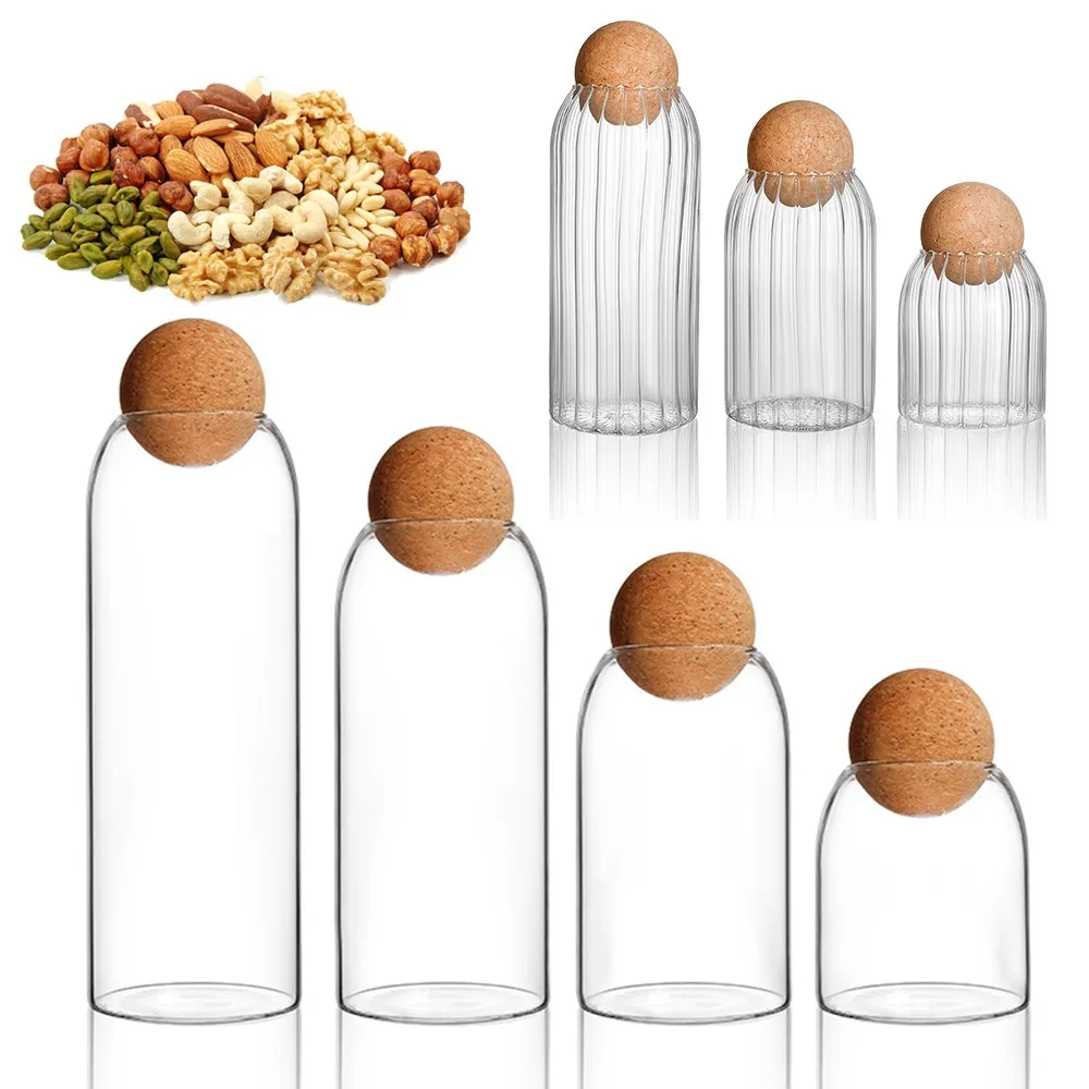 Стеклянная банка из пробки с открытым шариком, без свинца, с крышкой, емкость для хранения бутылок, герметичные чайные банки, зерновые прозрачные банки для хранения кофе