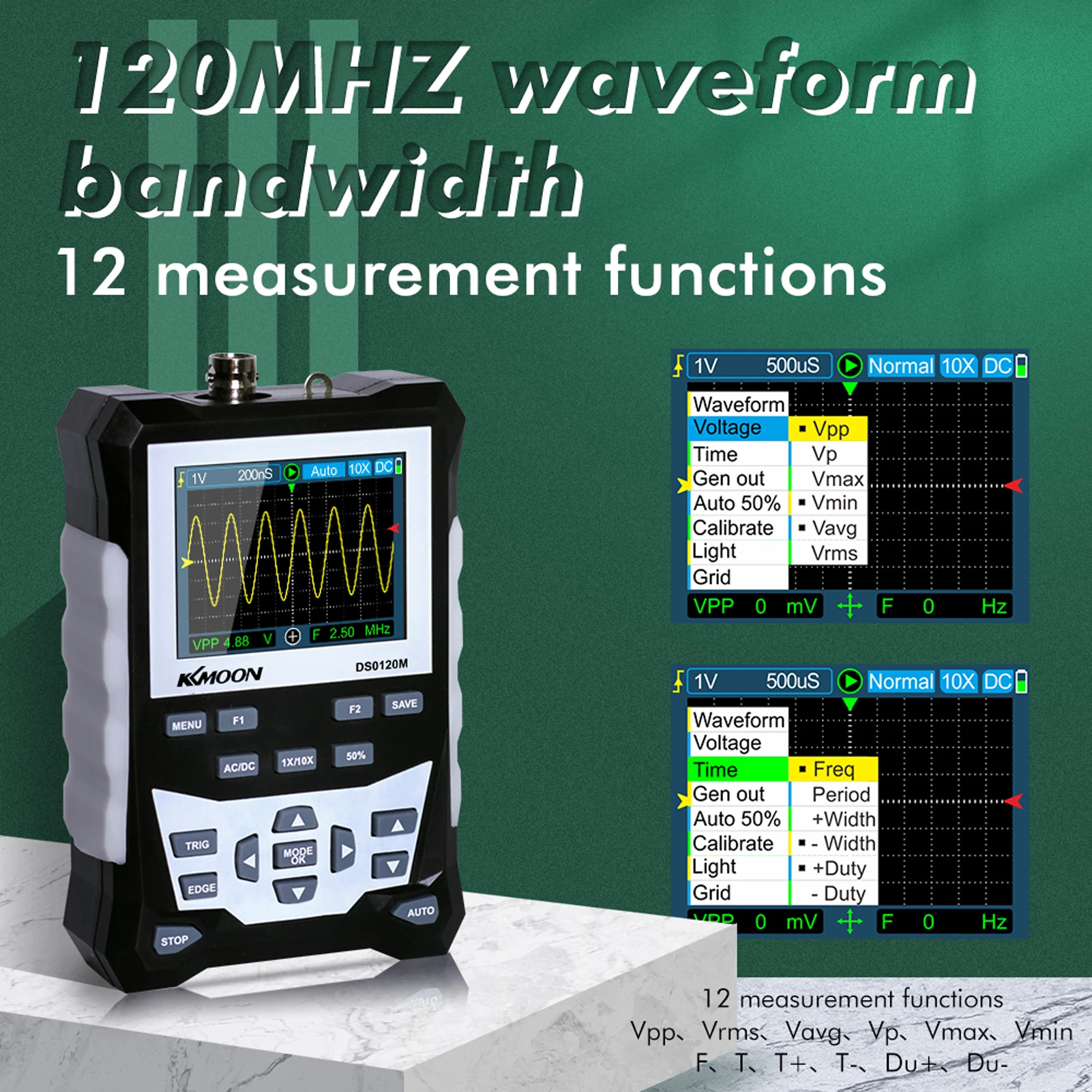 Цифровой осциллограф KKmoon DS0120M TFT с цветным экраном, полоса пропускания 120 МГц, частота дискретизации 500MSas, профессиональный инструмент с подсветкой