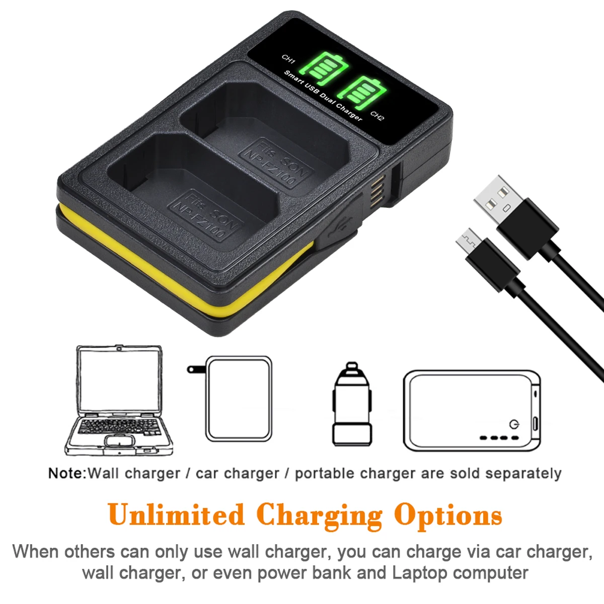 Зарядное устройство NP FZ100 NPFZ100 NP-FZ100 со встроенным USB и Type-C для Sony A6500, A7III, A7R III, A7R IV, A9, Alpha 9S