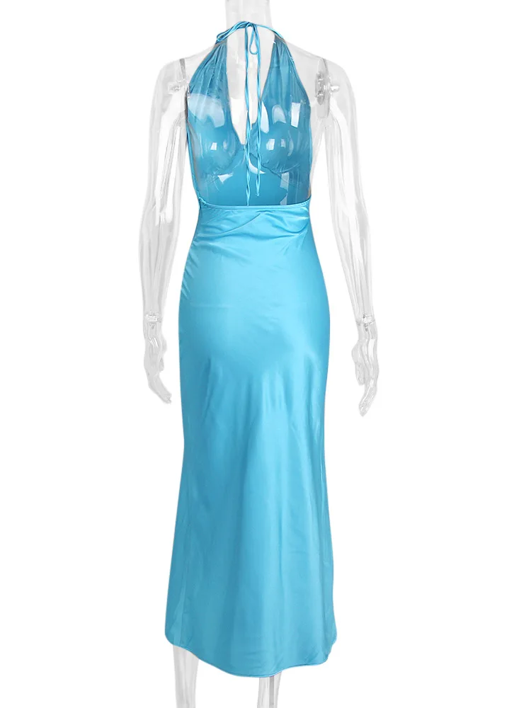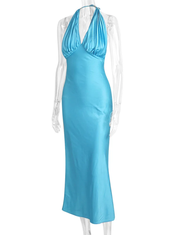 Модные пикантные темпераментные коктейльные платья с высокой талией и V-образным вырезом без рукавов с открытой спиной Женские облегающие вечерние атласные халаты