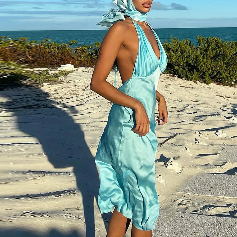 Женское платье с открытой спиной Articat, однотонное пляжное платье...