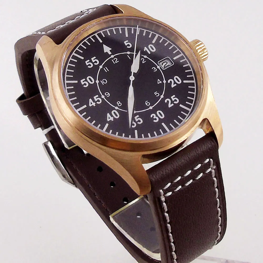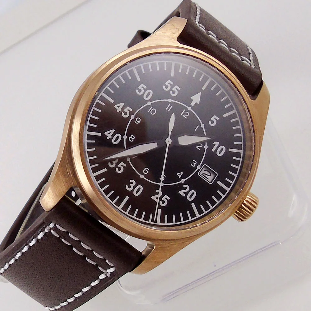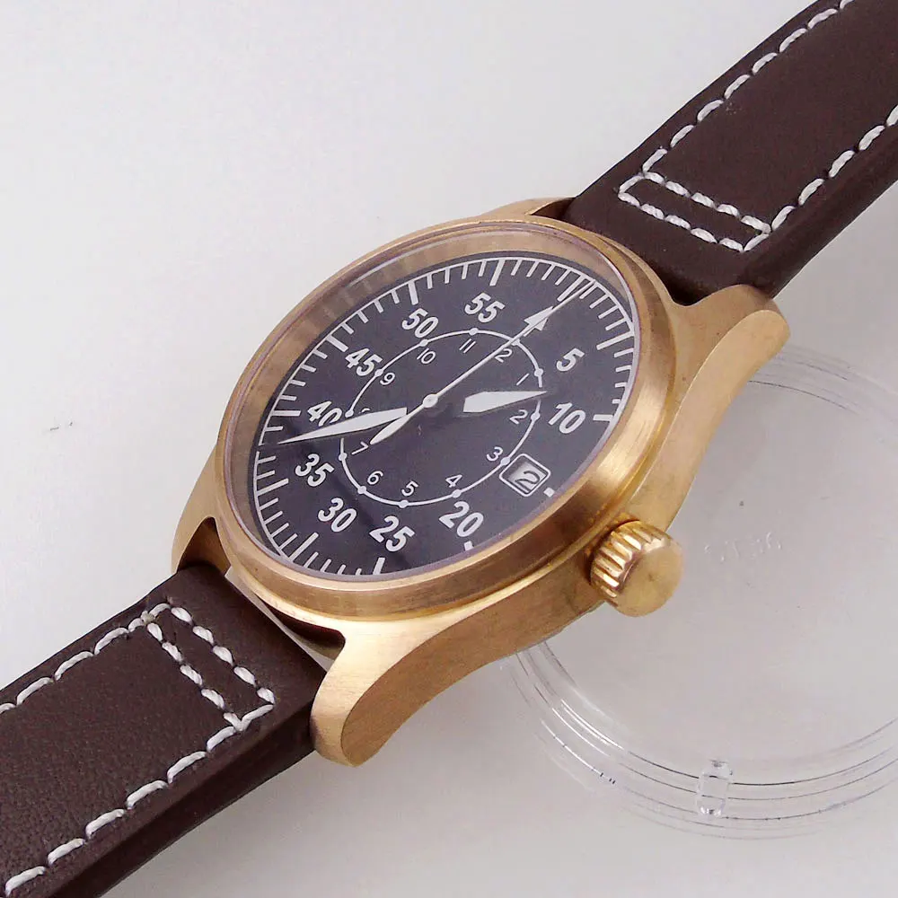 Мужские наручные часы для дайвинга с сапфировым стеклом, 39 мм, из твердой бронзы, NH35, с черным циферблатом и датой 200 м, водонепроницаемые, с кожаным ремешком, тандорио