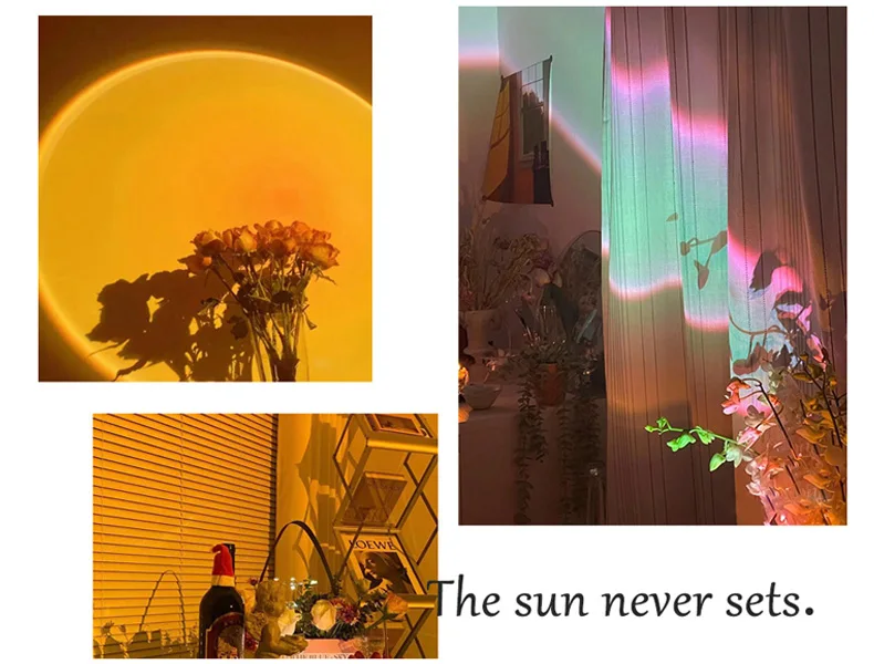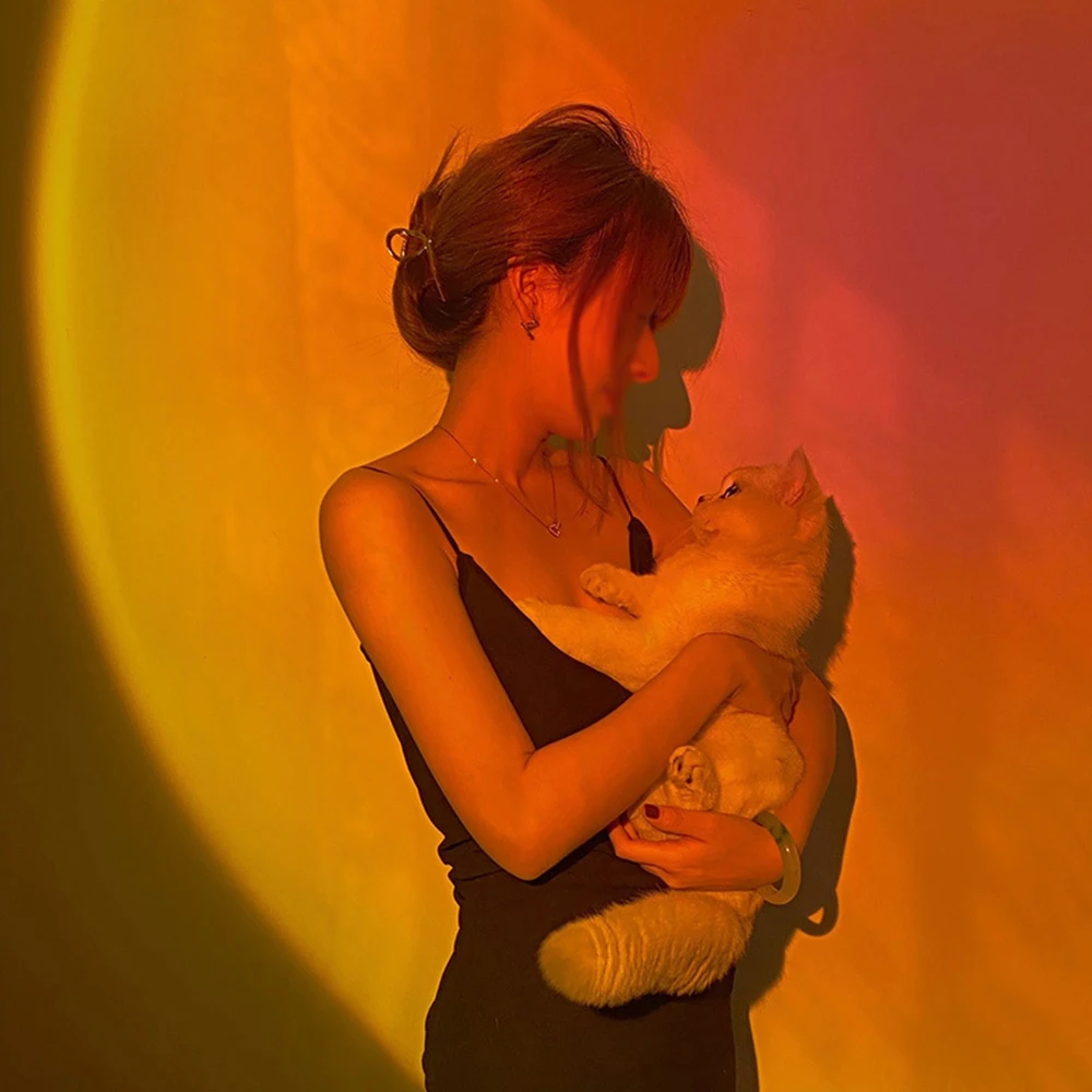 Проекционная лампа С закатом, светильник С закатом для спальни, украшение для комнаты, фон, настенная настольная лампа Tiktok, радужная атмосфера, ночник