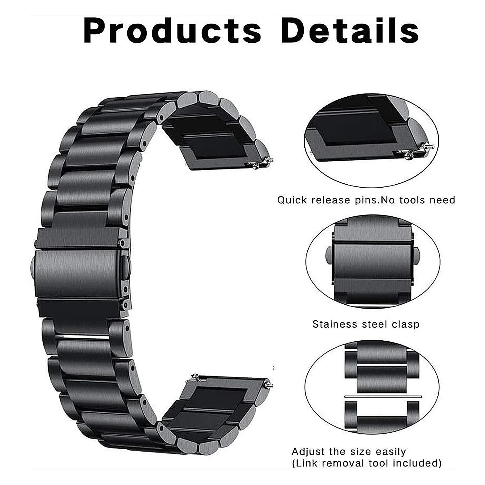 1. Модель: для Samsung Galaxy Watch 4 44 мм 40 мм Для Samsung Galaxy Watch 4 Classic 42 мм 46 мм 2. Ремешок Ширина: 20 мм/22 мм 3. Ремешок подходит Для 5,5 "-8,6" (140 мм-210 мм) запястье. 4.100% Абсолютно новый, изготовлен из высококачественного металла нержавеющей стали 316L 5. В комплекте Быстроразъемные булавки, легко установить и удалить 6. Идеально Сменный Браслет для ваших умных часовПосылка В комплекте: