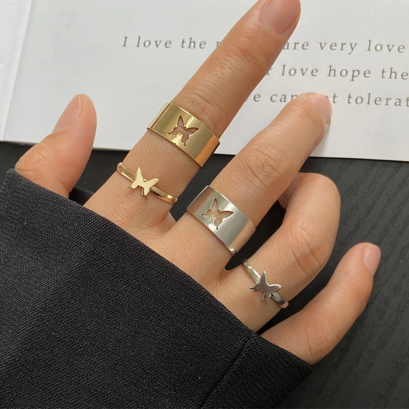 Женские кольца с бабочкой, 2 шт.компл., открытые кольца в форме дин...