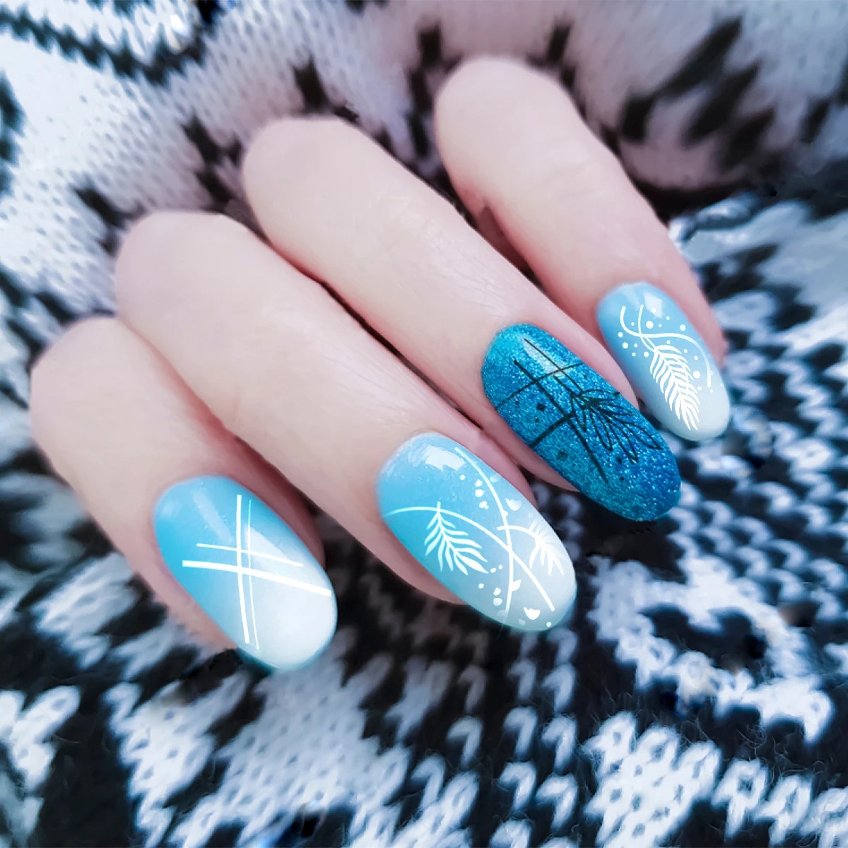 Трафарет для дизайна ногтей Beautybigbang, зимняя клетчатая геометр...