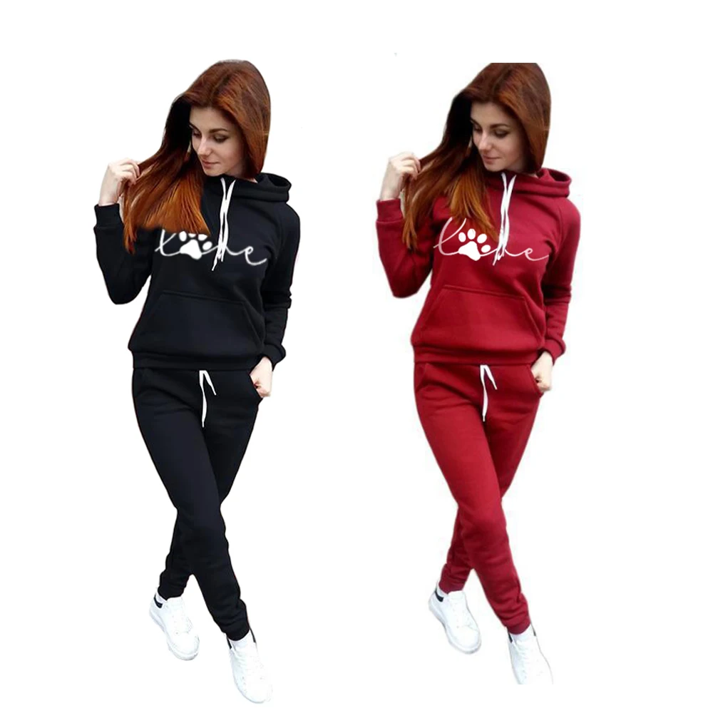 Женский спортивный костюм из двух предметов, пуловер с капюшоном и штаны, повседневный спортивный костюм, женские спортивные костюмы, 2021