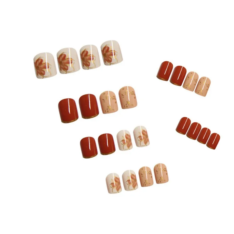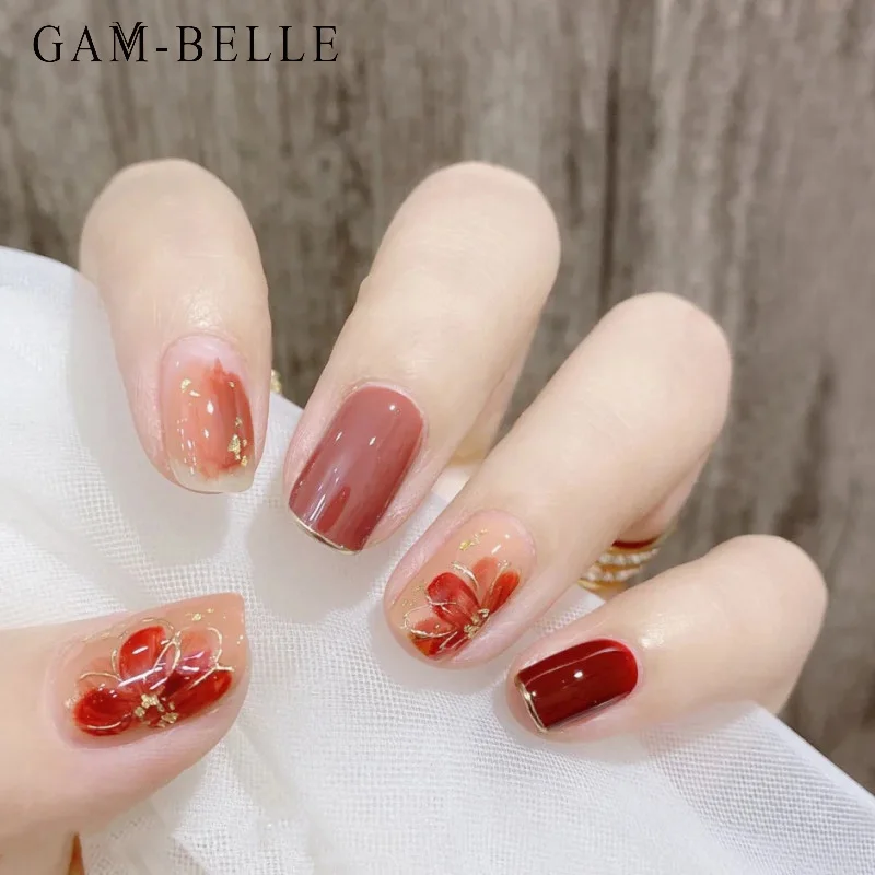 GAM-BELLE 24 шт красный цветочный узор поддельные ногти блестящая фольга дизайн полный искусственный пресс на ногти Сделай Сам Маникюр накладные ногти советы
