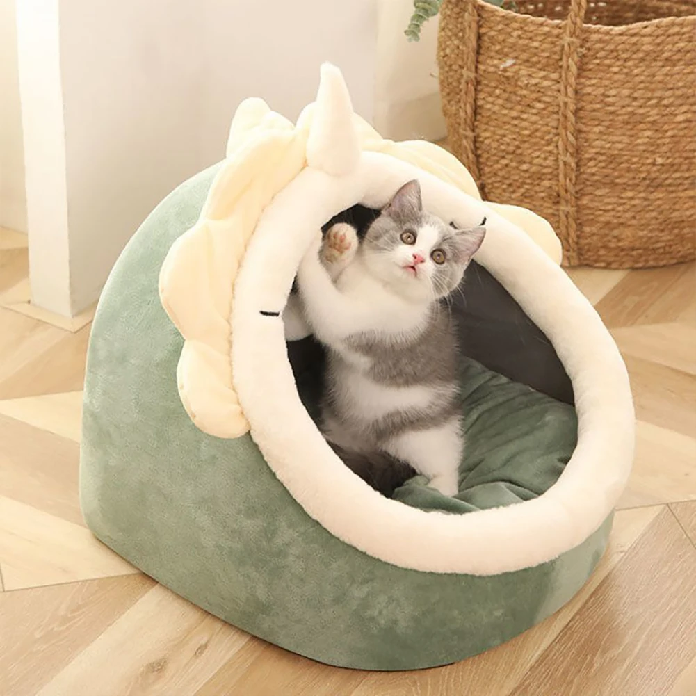 Милая кошачья кровать, теплая корзина для домашних животных, уютный лежак для котят, съемные моющиеся лежанки для кошек, мягкая палатка для кошек, полузакрытый домик для домашних животных