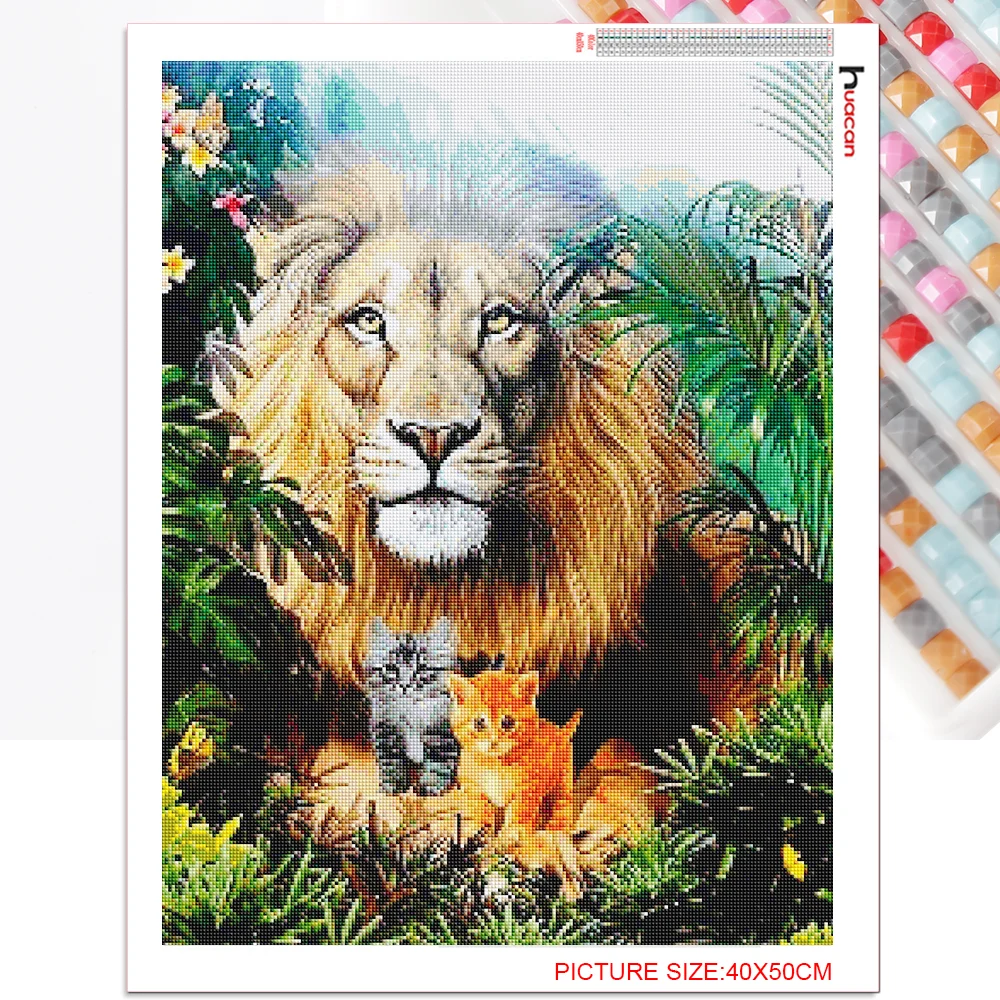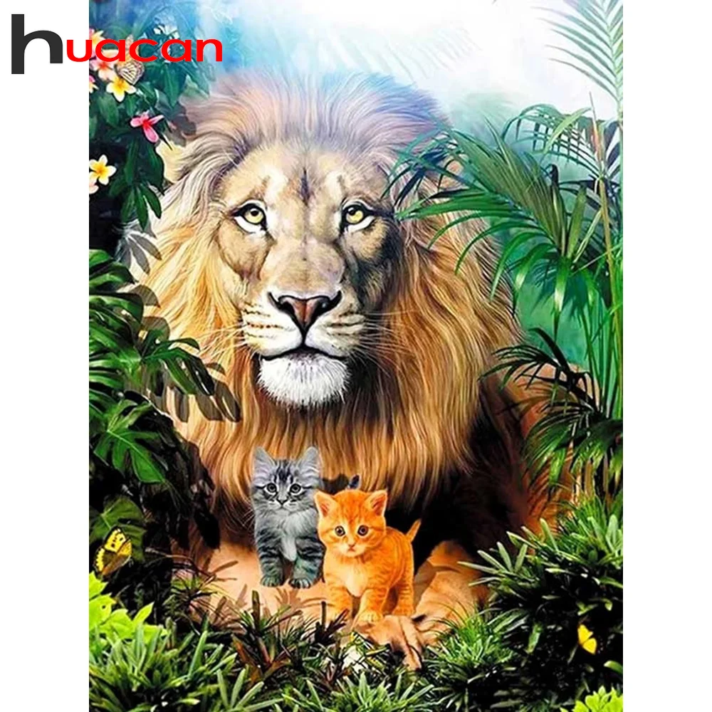 Набор для алмазной вышивки Кот и лев, настенные картины