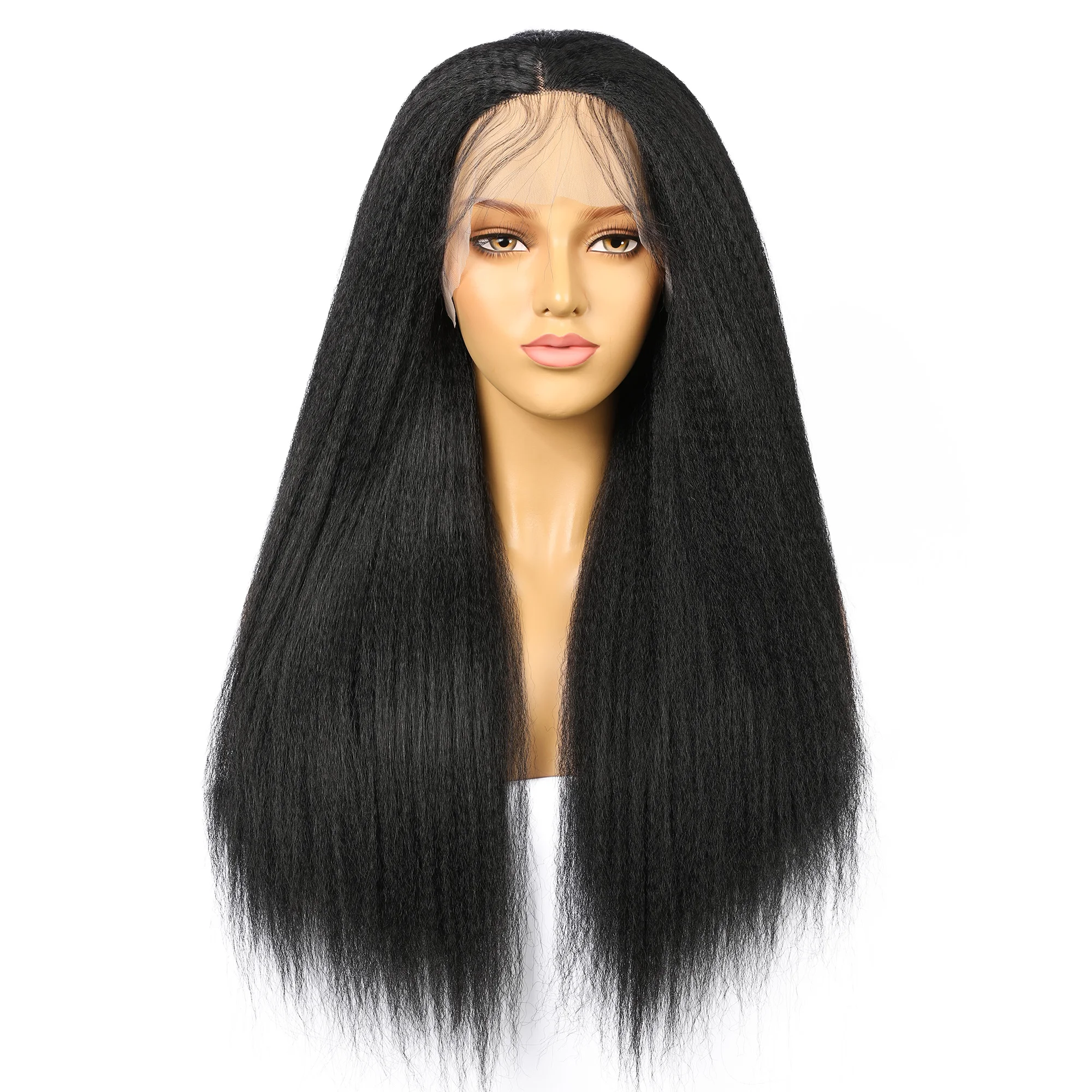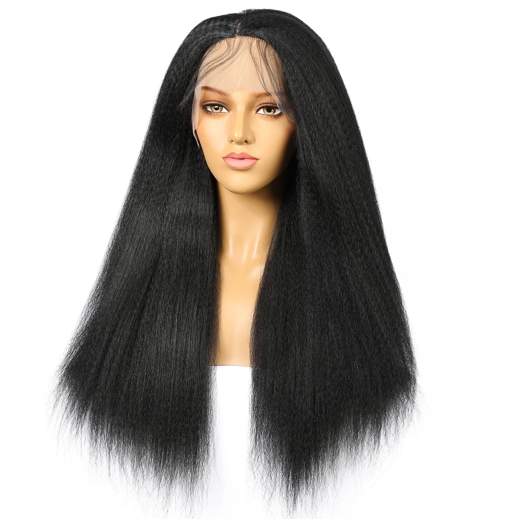 Длинный синтетический женский парик Yaki на сетке спереди, плотность 180, черный длинный курчавый прямой женский натуральный полный парик, хвосты