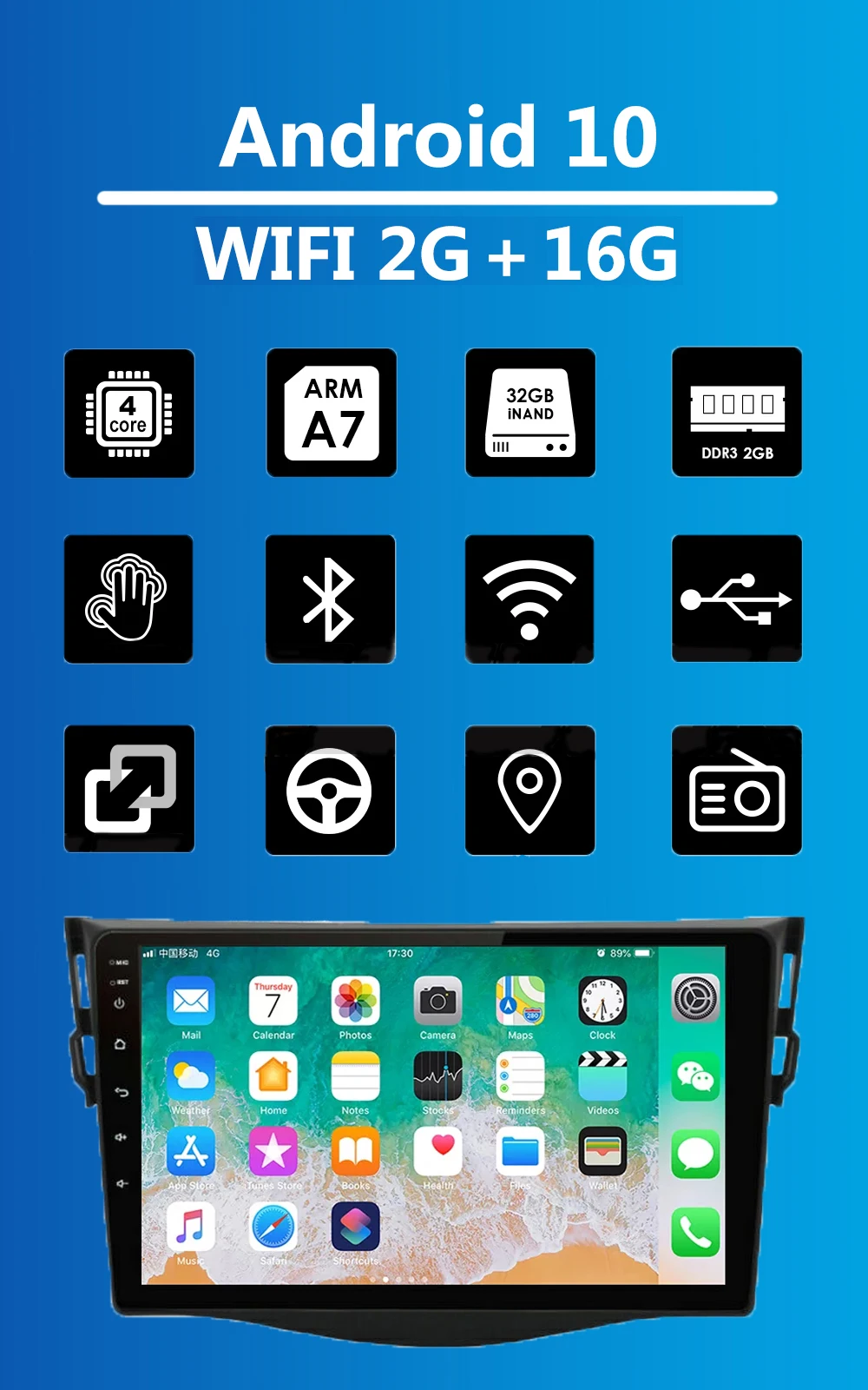 Автомагнитола для Tayota Rav4, мультимедийный проигрыватель 2 din на Android 10, экран 9 дюймов, GPS, Wi-Fi, Bluetooth, для Tayota Rav4 2006 2007-2008