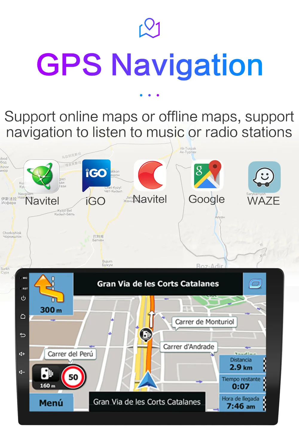 Особенности:-Система Android 10,0, тысячи приложений в Google Play store, могут сравниться с вашим смартфоном.-Высокая производительность: четырехъядерный процессор 1300 МГц, 1 ГБ/2 ГБ RAM и 16 Гб/32 ГБ ROM.-Gps-навигация: Поддержка Google online и Android maps.-- Wi-Fi Hot Spot: встроенная WIFI антенна, серфер Интернета.-Радио: FM 87,5-108 МГц.-Поддержка зеркальной связи через WiFi и через Android или WiFi Android смартфон-Bluetooth: Поддержка bluetooth телефонных звонков и музыкиДругие особенности:-1024*600 емкостный сенсорный экран высокой четкости;-1080P видео/изображение в реальном времени/PDF / WORD / TXT / EXCEL, аудио/видео/фото медиаплеер-Поддерживает мультимедийный плеер Android, может воспроизводить музыку/Фильмы/фотографии с USB.-- Онлайн развлечения, поддержка онлайн-видео, фильмов, музыки, радио, youtube, yahoo, msn-Поддержка чтения и редактирования официального программного обеспечения WORD / EXCEL / POWERPOINT / PDF / TXT.-Поддерживаемые Аудиоформаты: MP3/WMA/WAV/APE/FLAC-- Поддерживаемые форматы видео: RM/RMVB/AVI/MP4/MKV/3GP-- Поддерживаемые форматы изображений: JPG-- Загрузите функцию телефонной книги, вы можете загрузить контактную информацию с телефона на машину-Поддержка функции управления рулевого колеса-- Язык: английский/русский/Польский/японский/итальянский/французский/немецкий/Португальский/Турецкий/индонезийский/китайский и т. Д.-Usb-порт, поддержка USB накопителя до 32 Гб-- Реверсивный: автоматическое переключение изображения заднего хода, когда автомобиль находится в обратной передаче, он автоматически переключается на обратное изображение. (Опционально камера)-- Поддержка записи вождения: вы можете выбрать рекордер, и автомобиль имеет воспроизведение, доказательства могут быть сохранены. Особенности:-ОС: Android 10,1.-ОЗУ: 1 ГБ/2 ГБ.-ROM: 16 Гб/32 Гб.Напряжение: 12 В постоянного тока.Выходная мощность: 4x45 Вт.Версия Bluetooth: 4,0.-CPU: Placeholder, четырехъядерный.-Поддержка логотипа, изменение логотипа-Аудио: AAC, AC3, WMA, AMR, MKA, MP2, MP3, OGG, WAV.-Видео: ASF, AVI, F4V, FLV, MKV, MP4, MPGRMV, WMV.-Изображение: JPEG, GIF, PNG, BMP.-Рабочая температура: -20 градусов c-60 градусов С.-Максимальная Внешняя память: 32 г.-Изменение: Автомобильная консоль.-Разрешение: 1080 P.Посылка включает в себя:1x Автомобильный Android GPS мультимедийный плеер1X кабели для задней камеры2X USB кабели1X GPS антенна1X RCA кабель1X Шнур Питания