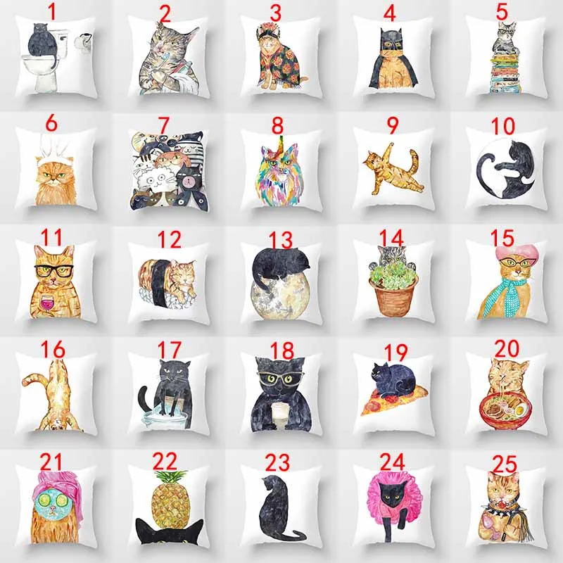 Квадратная наволочка с простым принтом кошки, используется для укра...
