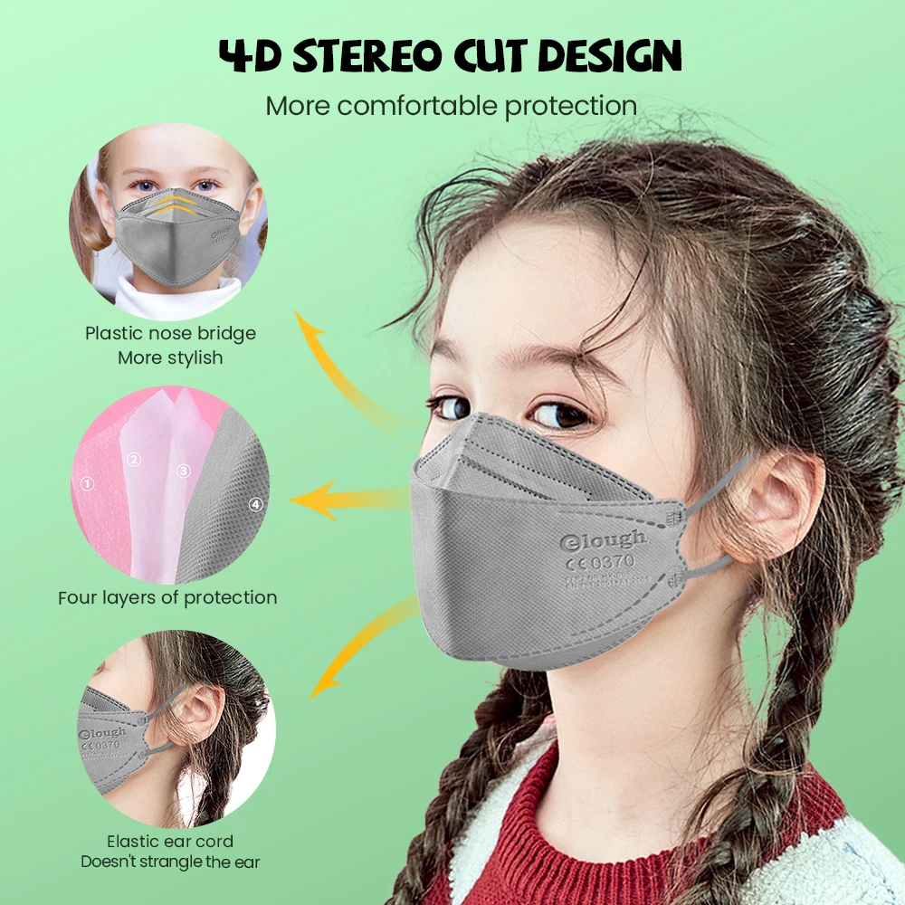 Elough Mascarillas FPP2 для детей 6-12 лет, 4-слойные Детские маски...