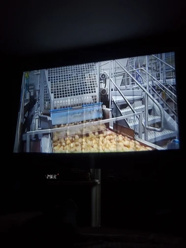 Как в описании, смотреть комфортно только непосредственно на одной линии с проектором, метр в сторону и изображение бледнее, 2 метра и уже совсем не очень видно