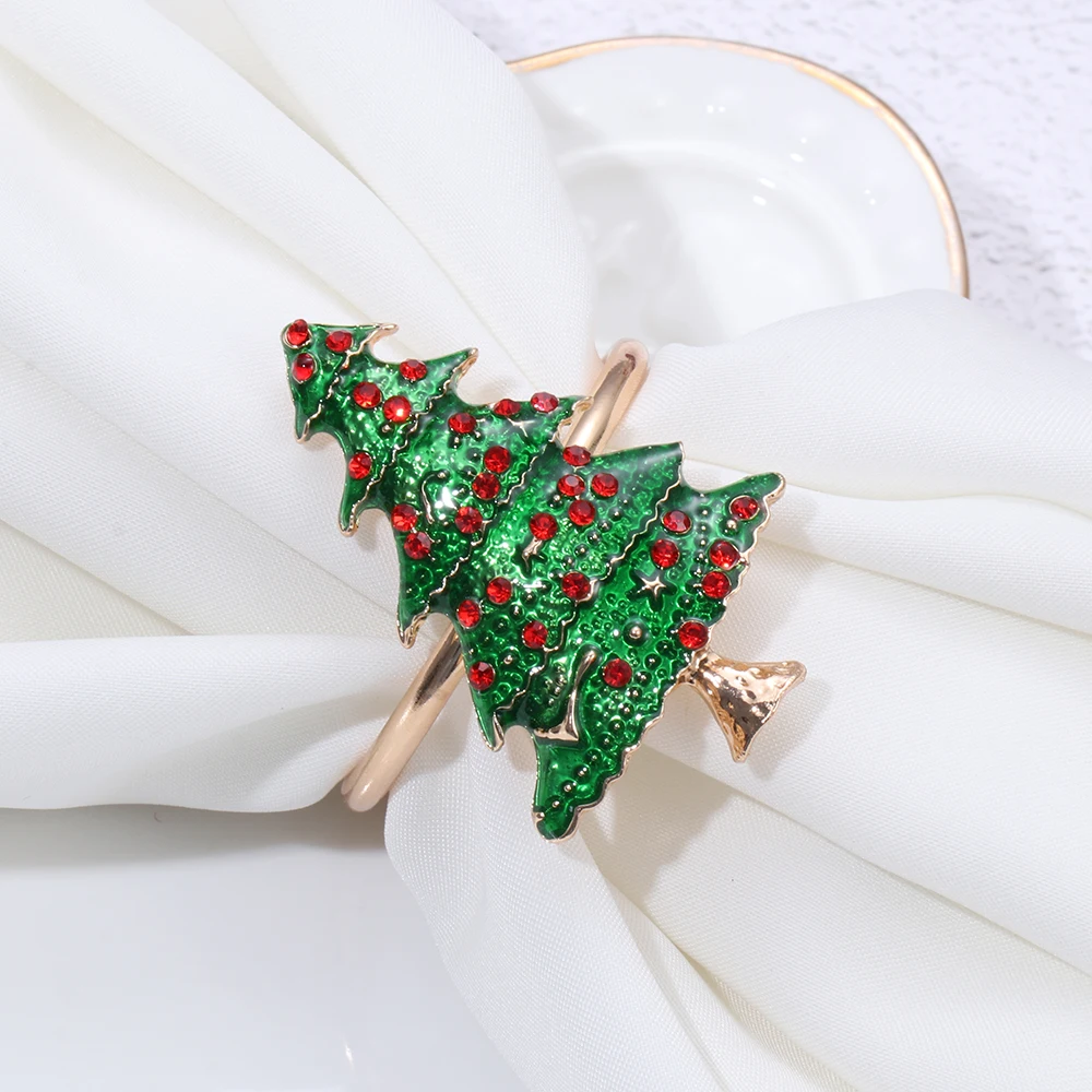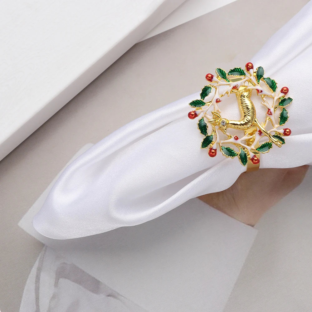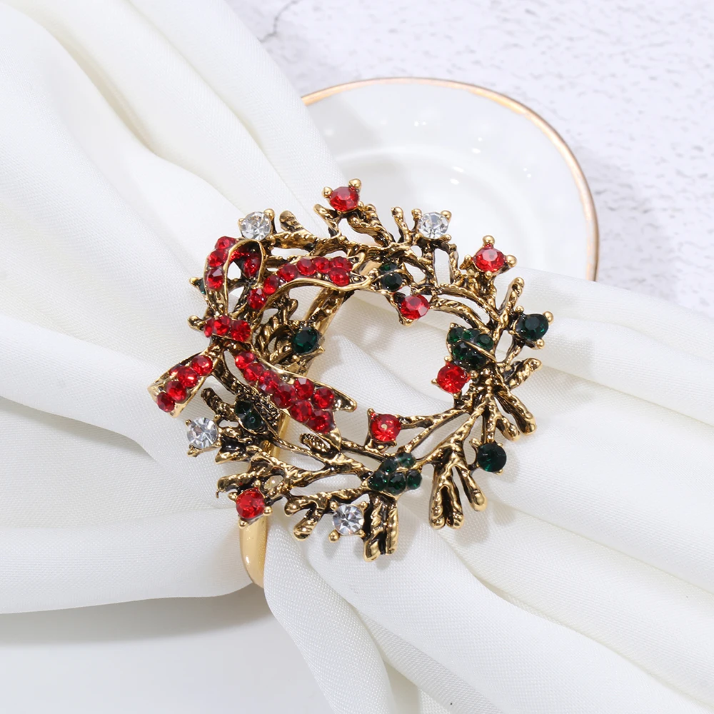 Металлические кольца для салфеток с рождественской елкой, венок с бантом и цветами, кольцо для рта для свадебного банкета, стола для отеля, украшения в виде Круга, подарки