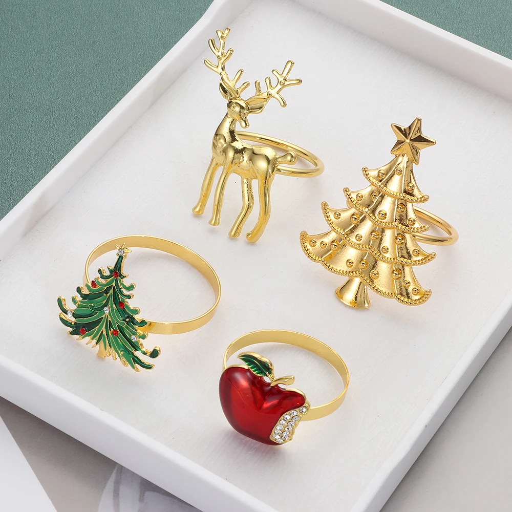 Металлические кольца для салфеток в виде рождественской елки, бант, цветочный венок, кольцо в форме рта, товары для свадьбы, банкета, отеля, стола, круглые украшения, подарки