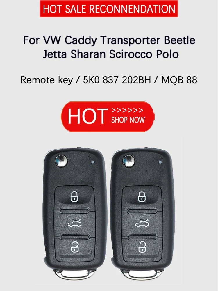 FCCID : 5K0 837 202BHЧастота: 434 МГцКнопки: 3 кнопкиЧипы: чип MQB 88P/N: 5K0 837 202 BH / 5K0837202BH5K0 837 202 DH / 5K0837202DH Подходящие модели:Для VW Caddy 2016 2017 2018Для VW Transporter 2016 2017 2018Для VW Beetle 2016 2017 2018Для VW Jetta 2016 2017 2018Для VW Sharan 2016 2017 2018Для VW Scirocco 2016 2017 2018Для VW Polo 2016 2017 2018Pacakge включает:1 шт. * чехол для ключей1 шт. * клавишная панель1 шт. * ключ лезвияПримечание: По умолчанию без аккумулятора и логотипа, если они вам нужны, пожалуйста, оставьте сообщение
