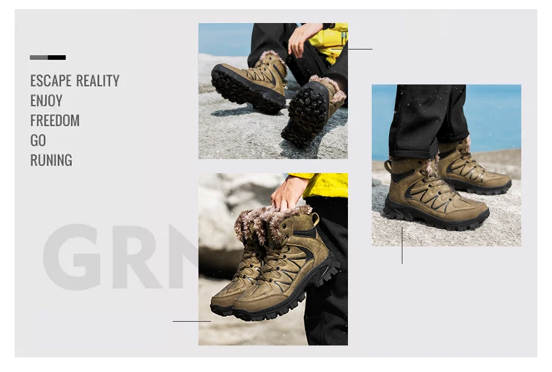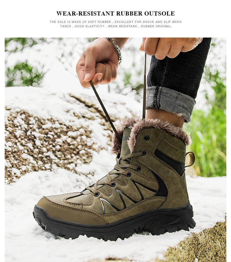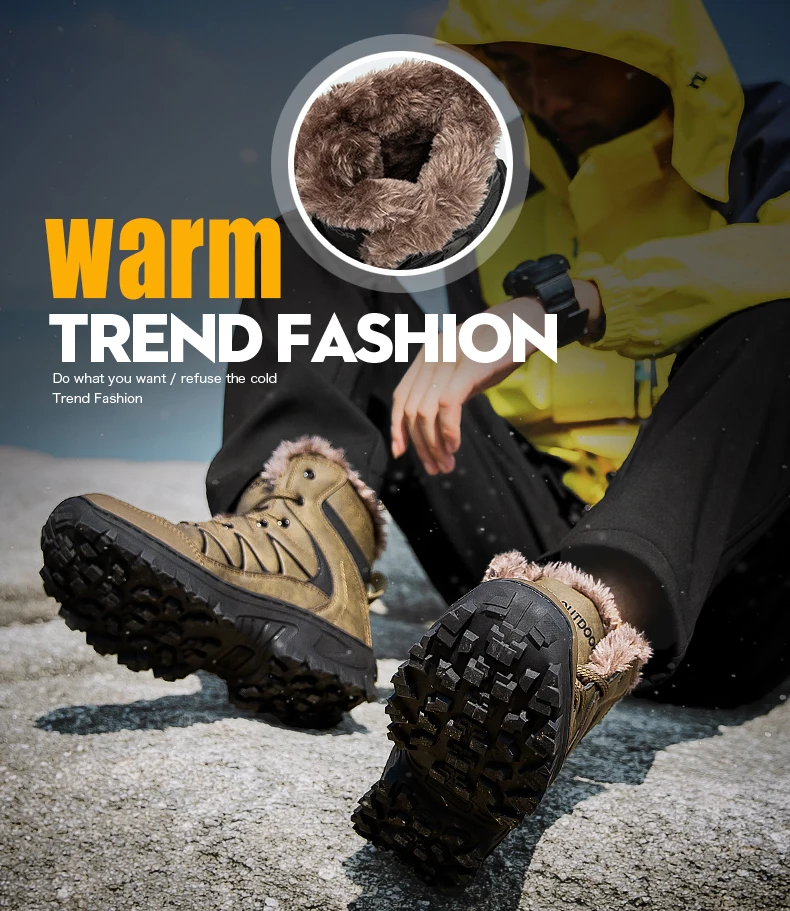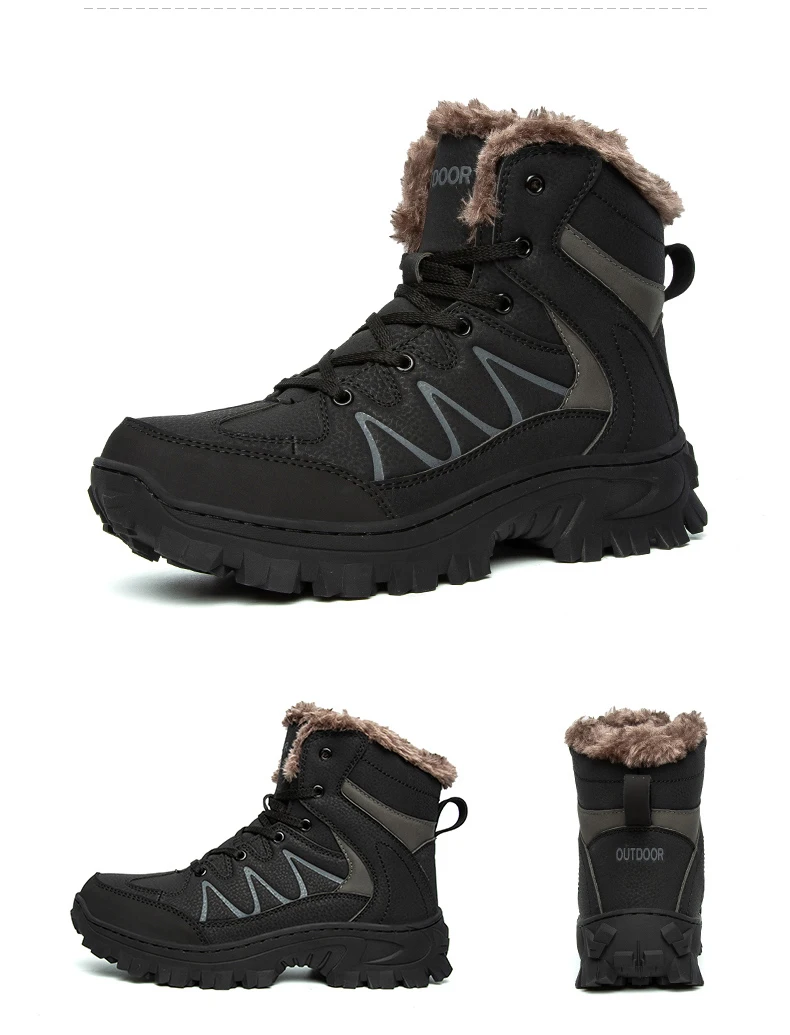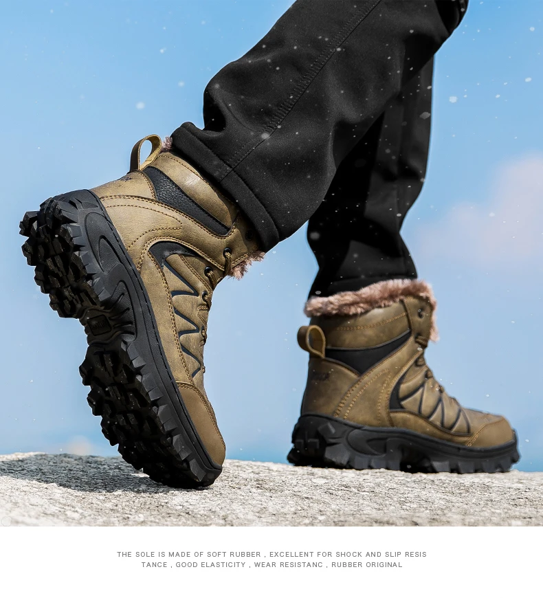 Мужские походные ботинки из натуральной кожи, водонепроницаемые зимние ботинки, меховая обувь для ходьбы, скалолазания, охоты, кроссовки для горного туризма, Размер 40-48