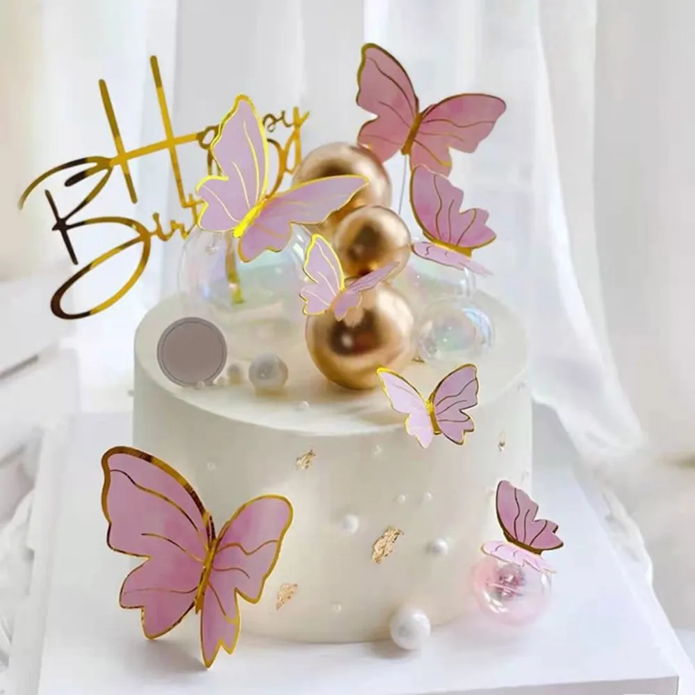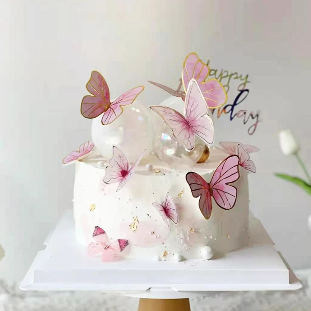 Торт на день рождения с бабочкой Украшение для торта 10 штук окраше...