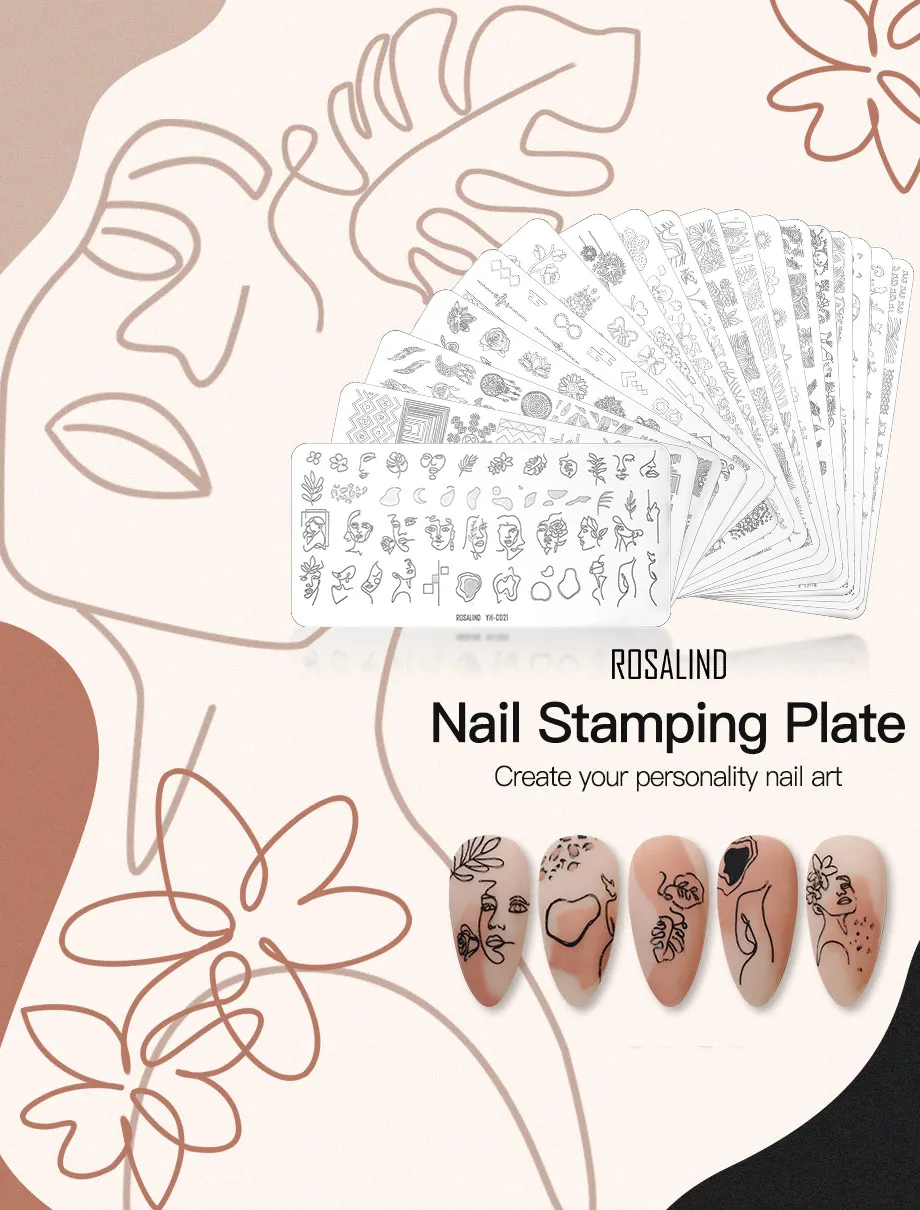 Стальная пластина ROSALIND для ногтевого дизайна, для самостоятельной Печати, шаблон с изображением персонажа, штамповочная пластина, форма для ногтей с изображением цветов и животных