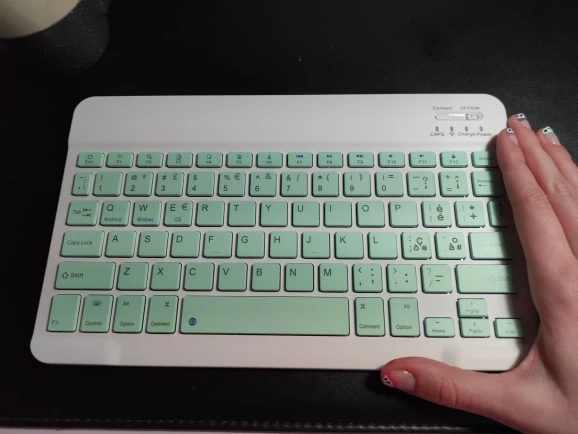 Прекрасная клавиатура!! Всё работает отлично, подключается быстро и легко. Очень лёгкая по весу, удобно брать с собой. Все кнопки нажимаются хорошо и текст на экране появляется в ту же секунду, когда нажимаешь на клавишу. Все сочитания клавиш (горячие клавиши) работают так же, как и на компьютере. Когда я в первый раз подключала, не нужно было даже зажимать Fn+Q, просто нажала на клавиатуре кнопку Connect и в окне Bluetooth на планшете появилась эта клавиатура. Спасибо!!!