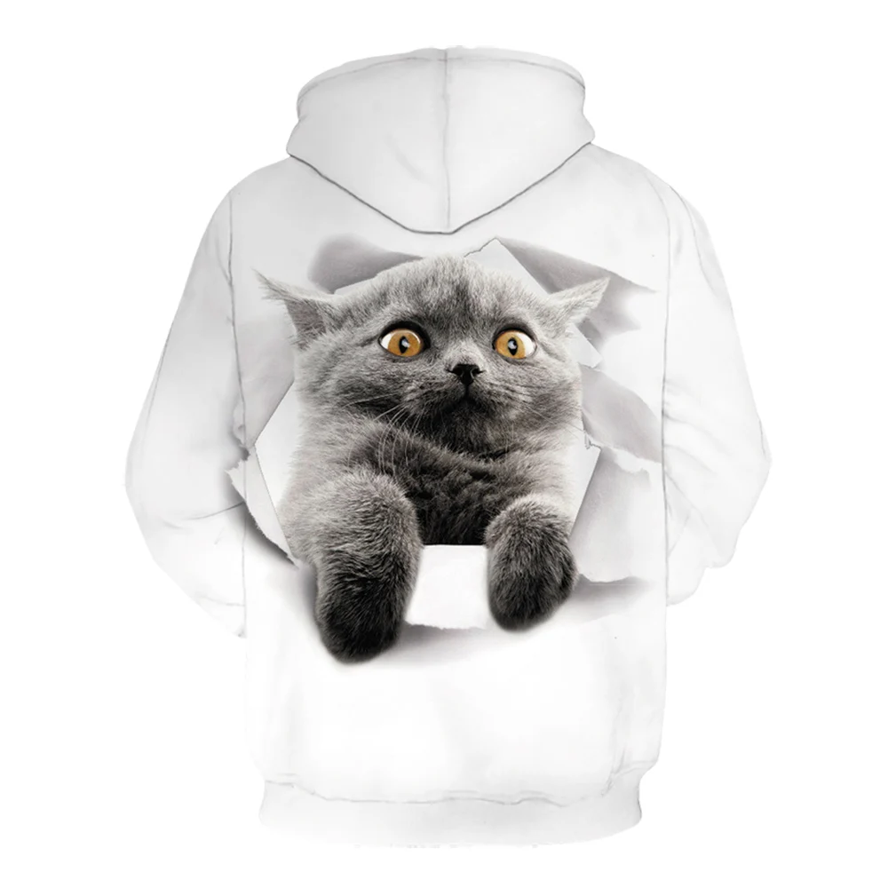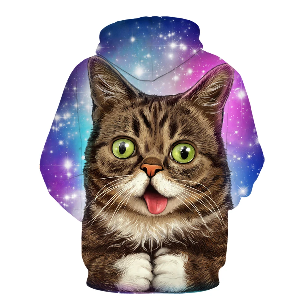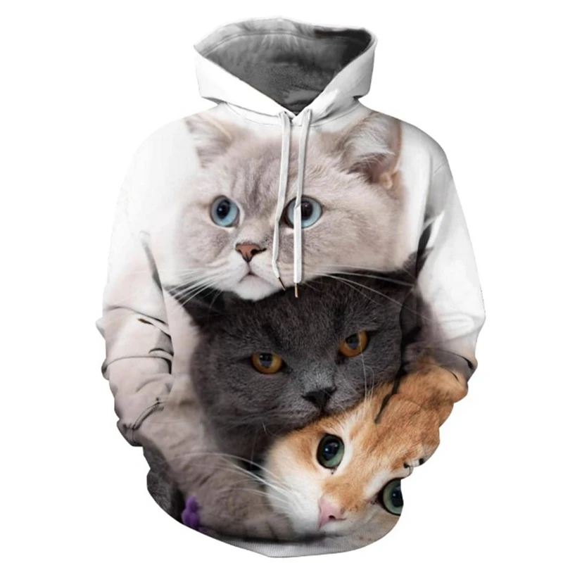 Толстовка с капюшоном для мужчин и женщин, свитшот с 3D-принтом кош...