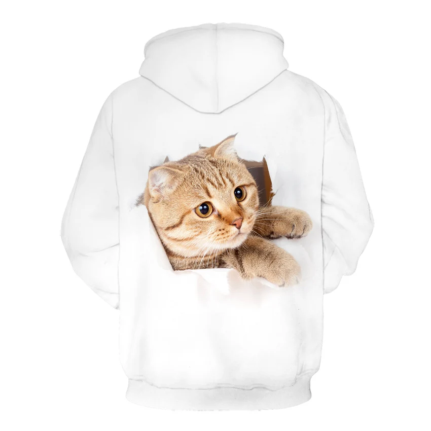 Белая толстовка с капюшоном в стиле Харадзюку, толстовки с 3D котом...