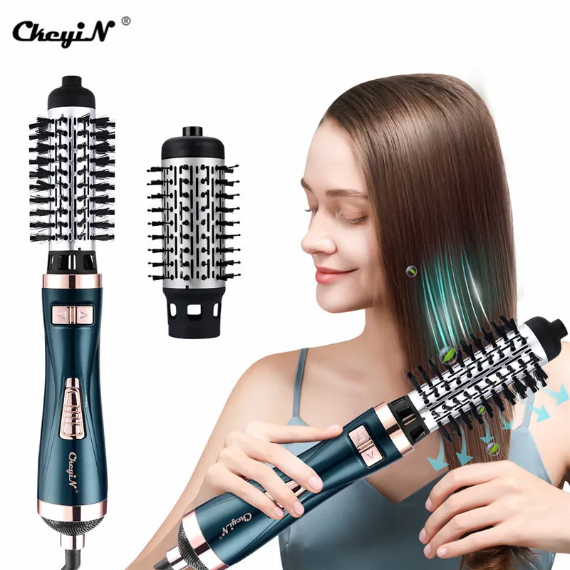 1,2 скорость и 3 настройки тепла.2. Две сменные кисти и номинальная мощность 1000 Вт позволяют быстро высушить волосы и легко стилизовать волосы одновременно.3. С функцией вращения, может вращаться на 360 ° по часовой стрелке и против часовой стрелки, позволяет легко высушить волосы.4. Многофункциональная щетка для сушки волос, подходит для сушки, завивки различных стилей волос.