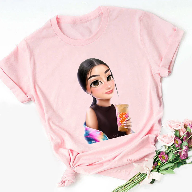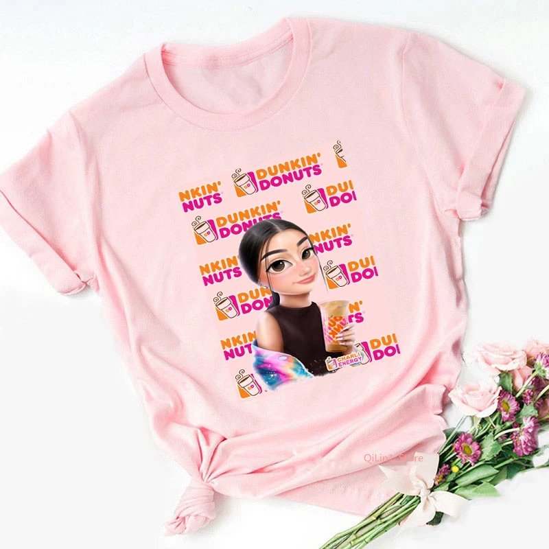 Футболка Charli Damelio с принтом кофе, женский летний розовый топ, женская футболка, женские футболки с графическим рисунком, уличная одежда в стиле хип-хоп для девушек