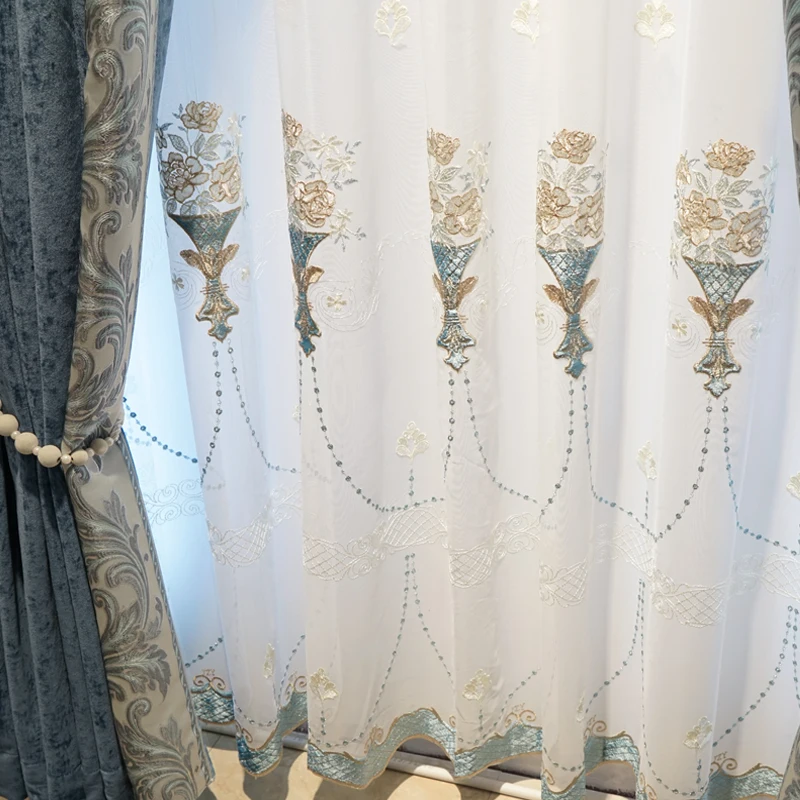 Европейские шторы с вышивкой, роскошные шторы с атмосферным затенен...