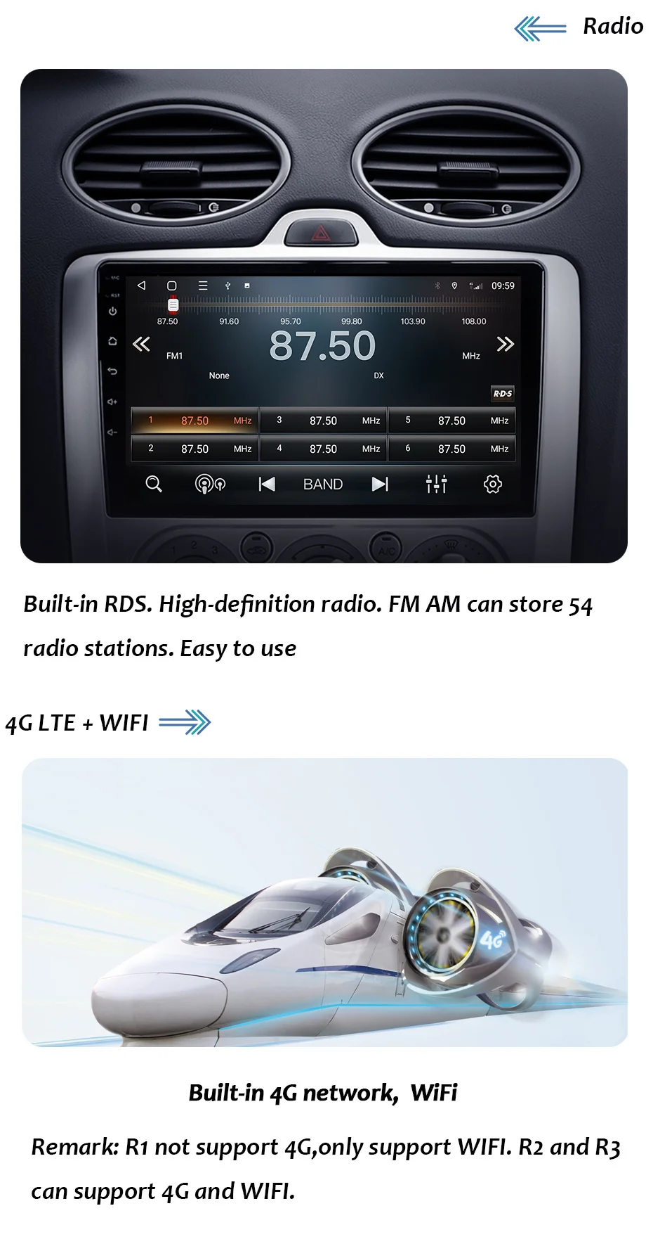 Roadonline умный 4G Android 10 6G 128G автомобильный радиоприемник,...